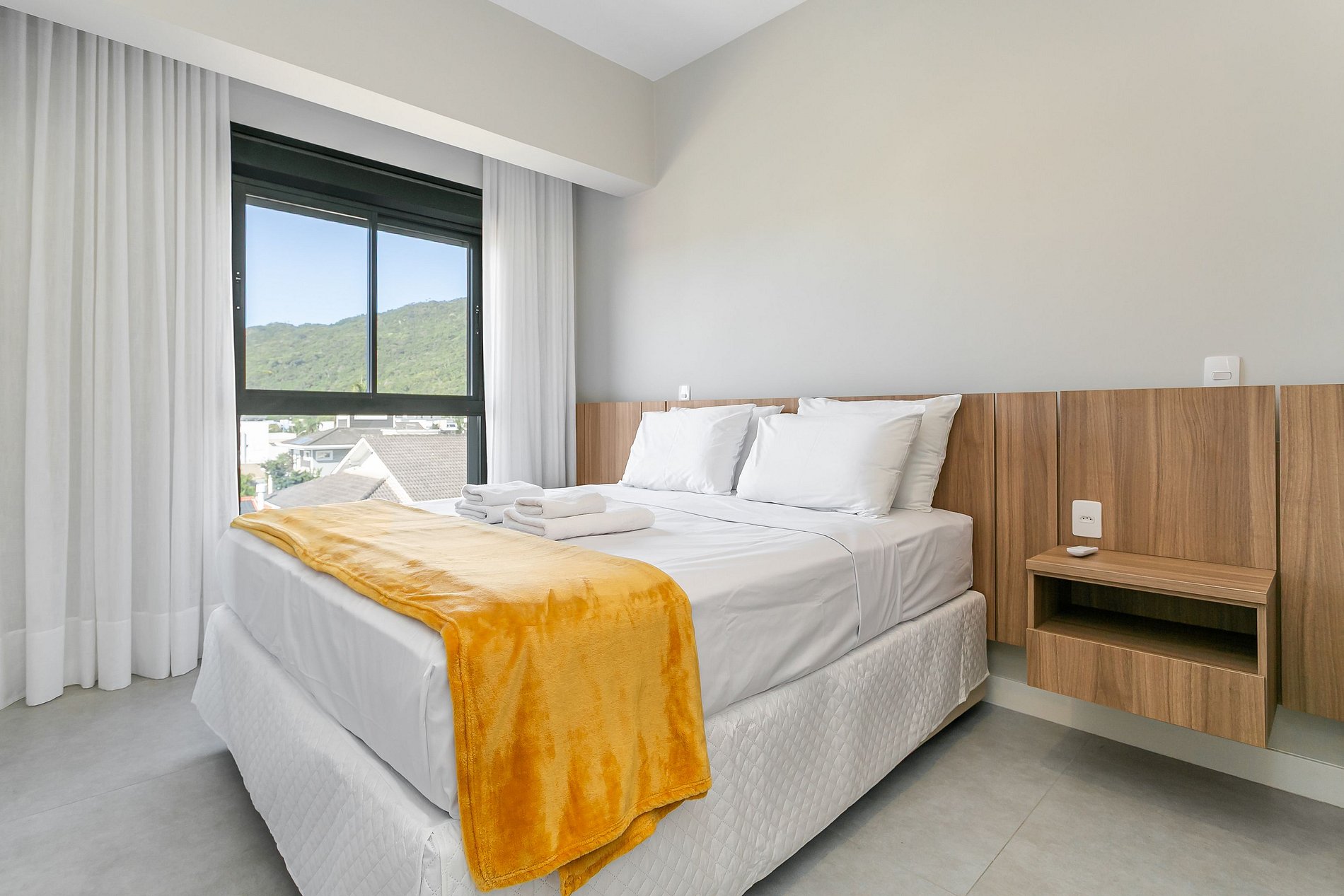 The 44 m² apartment features one queen-size bed, a living room with a double sofa bed and a 50" Smart TV, as well as a balcony with a barbecue grill. All rooms are equipped with split air conditioning (hot and cold).