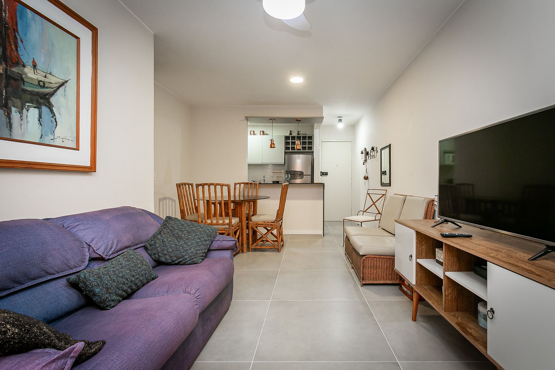 - Living room equipped with Smart TV and ceiling fan