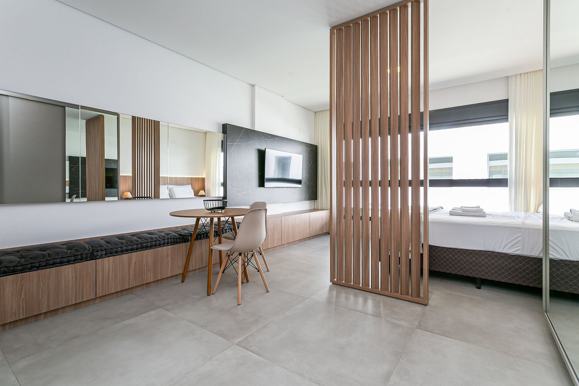 The apartment is located in the heart of the Florianópolis Technology Hub, one of the city's most sought-after areas. Just minutes from Passeio Primavera and Square SC, you will be surrounded by great restaurants, cafes, markets, and essential services.