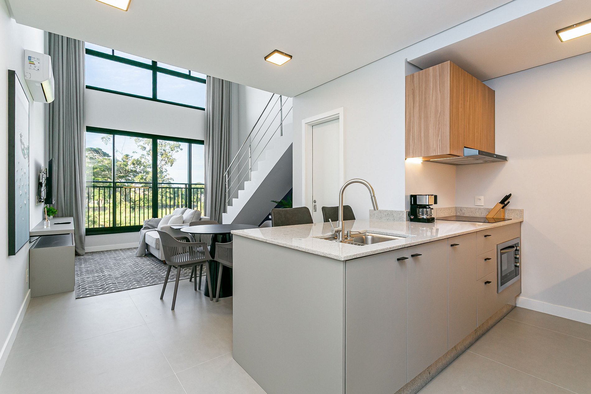 The studio is located in a condominium with outstanding infrastructure, just steps away from one of the most beautiful and famous beaches in Florianópolis: Campeche Beach.