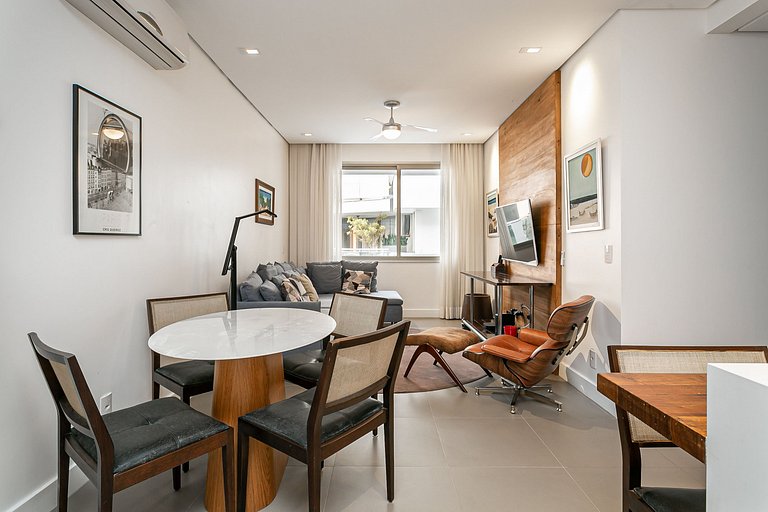 The 77m² property has a suite with a KING BED and a living room equipped with a 55” Smart TV with Claro TV. All rooms are equipped with AC SPLIT (HOT AND COLD).