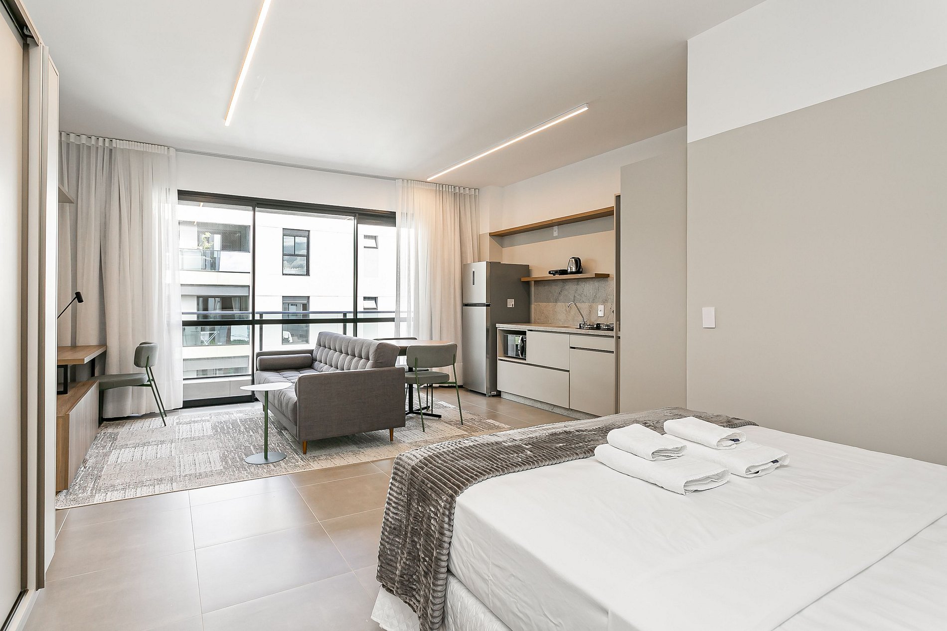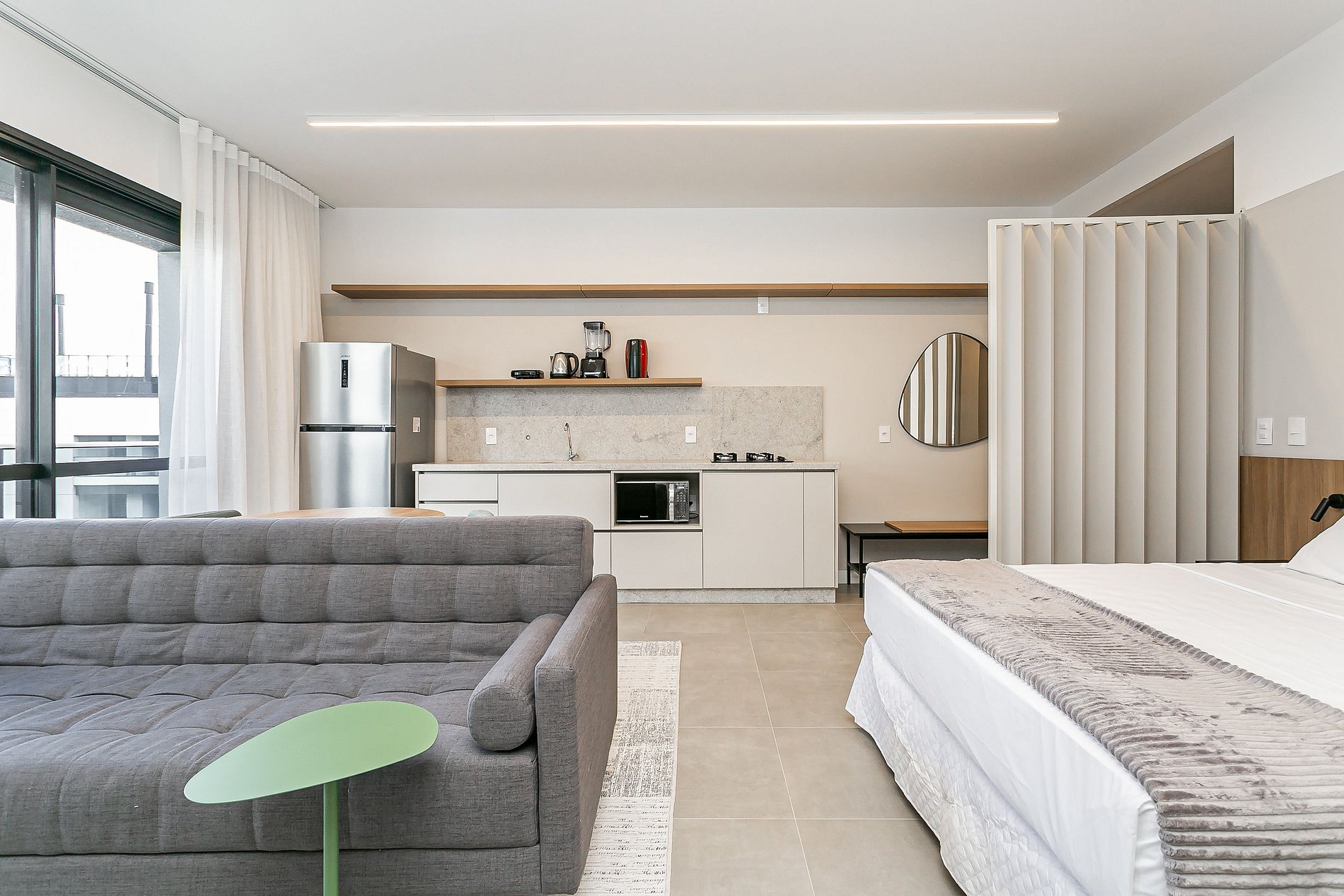 Our space seeks to bring the facilities and conveniences of a hotel with the comfort of an apartment. Fully furnished studio with: