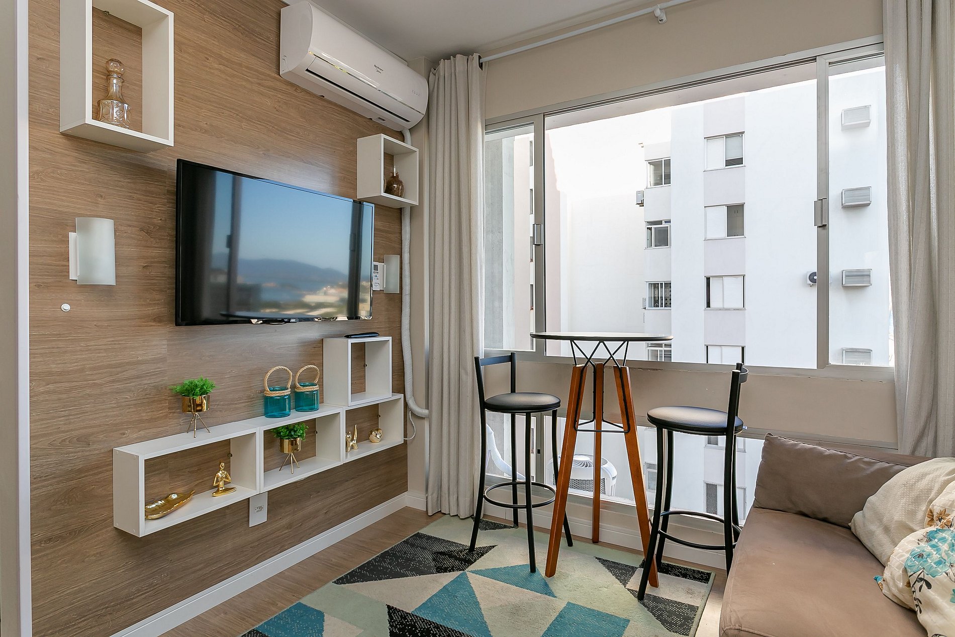 - Living room equipped with Smart TV and SPLIT AC