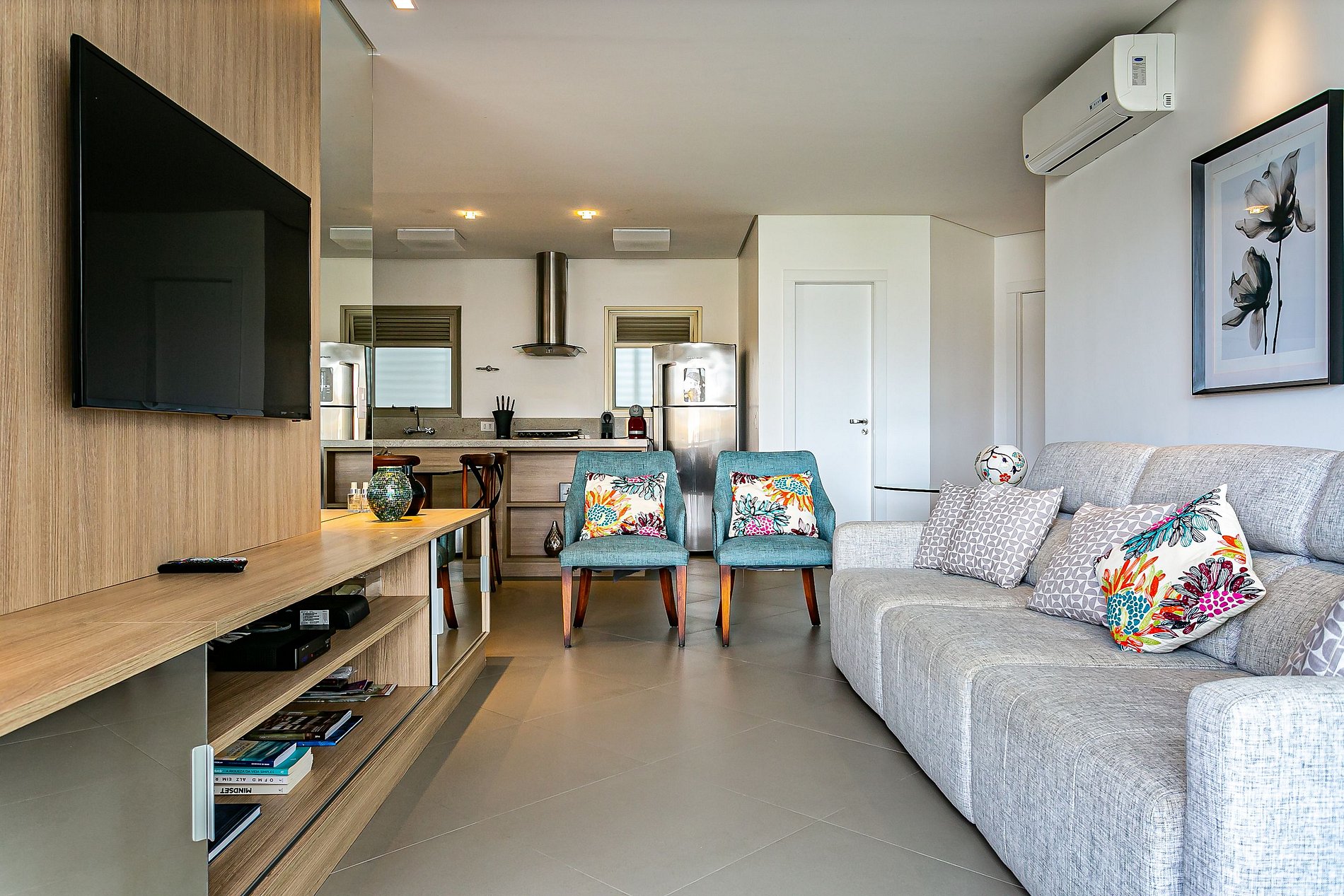 - Living room equipped with Smart TV and SPLIT AC