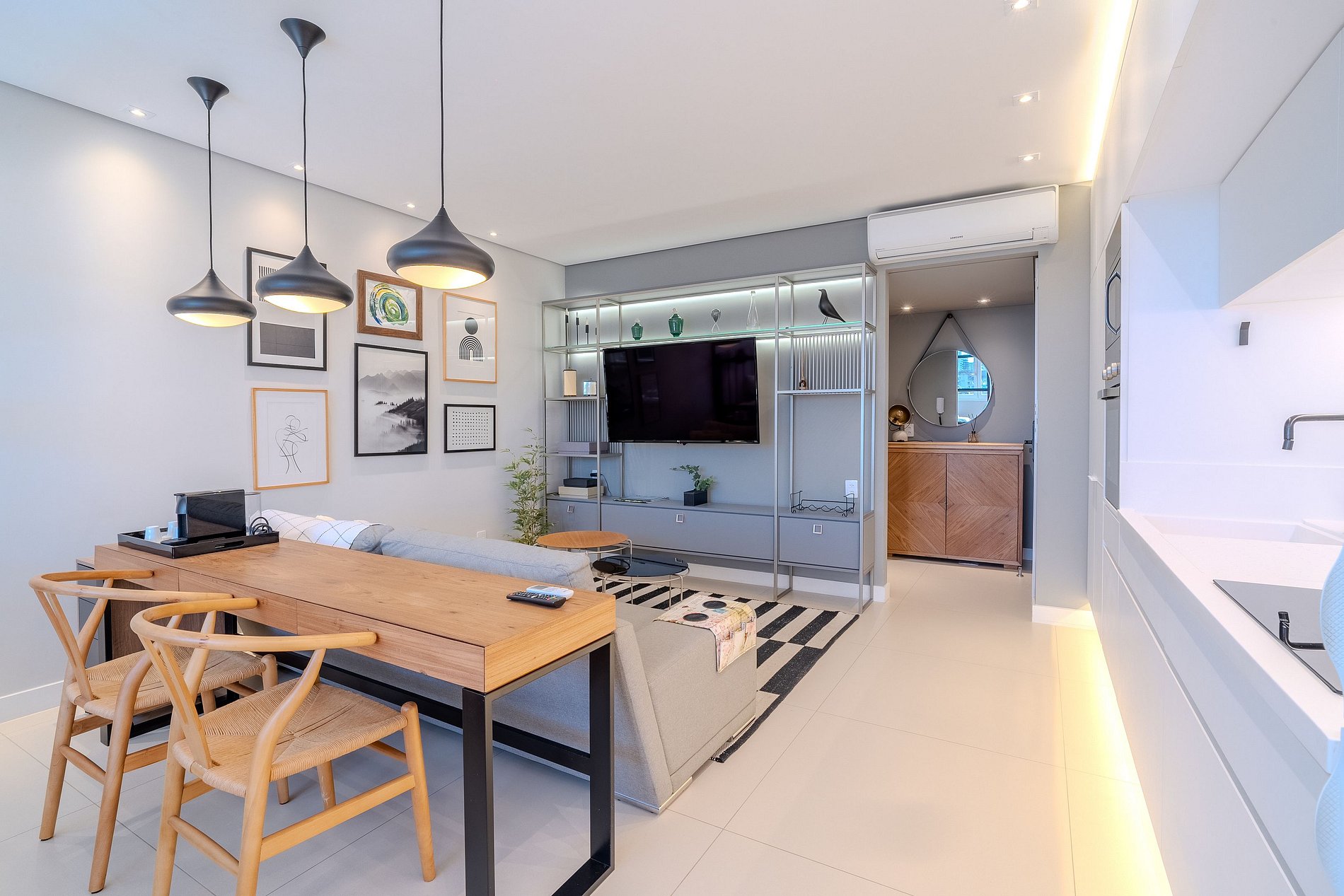 The 40m² property has a QUEEN BED, 55” SMART TV AND SPLIT AC (HOT AND COLD).