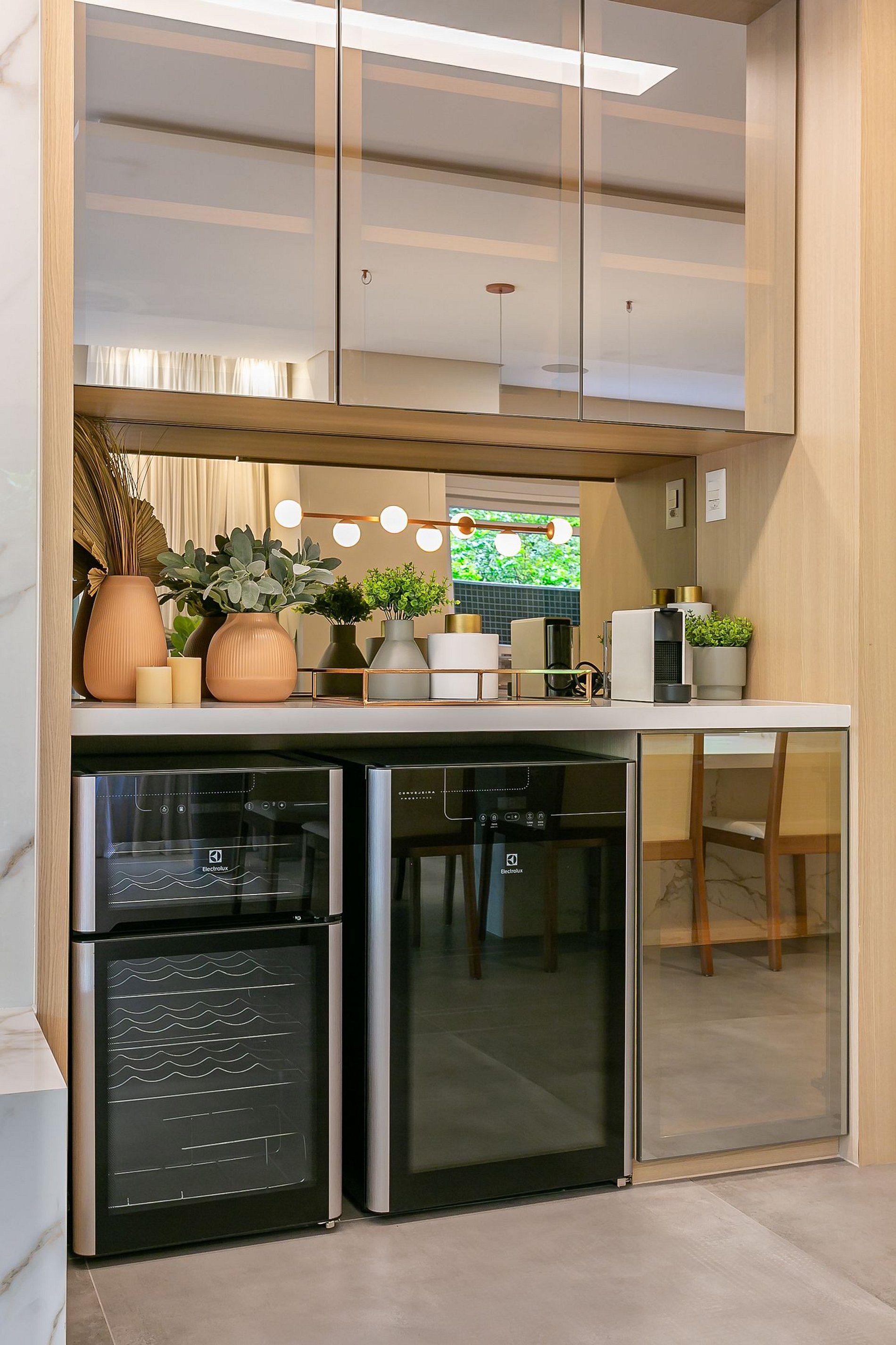 - Living room equipped with two wine cellars, fridge, Smart TV with home theater and SPLIT AC