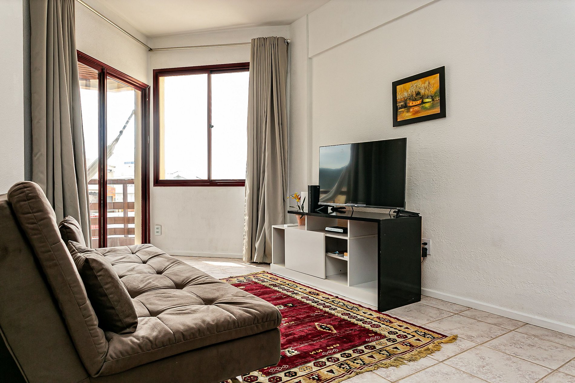 - Living room equipped with a SINGLE sofa bed, Smart TV and SPLIT AC