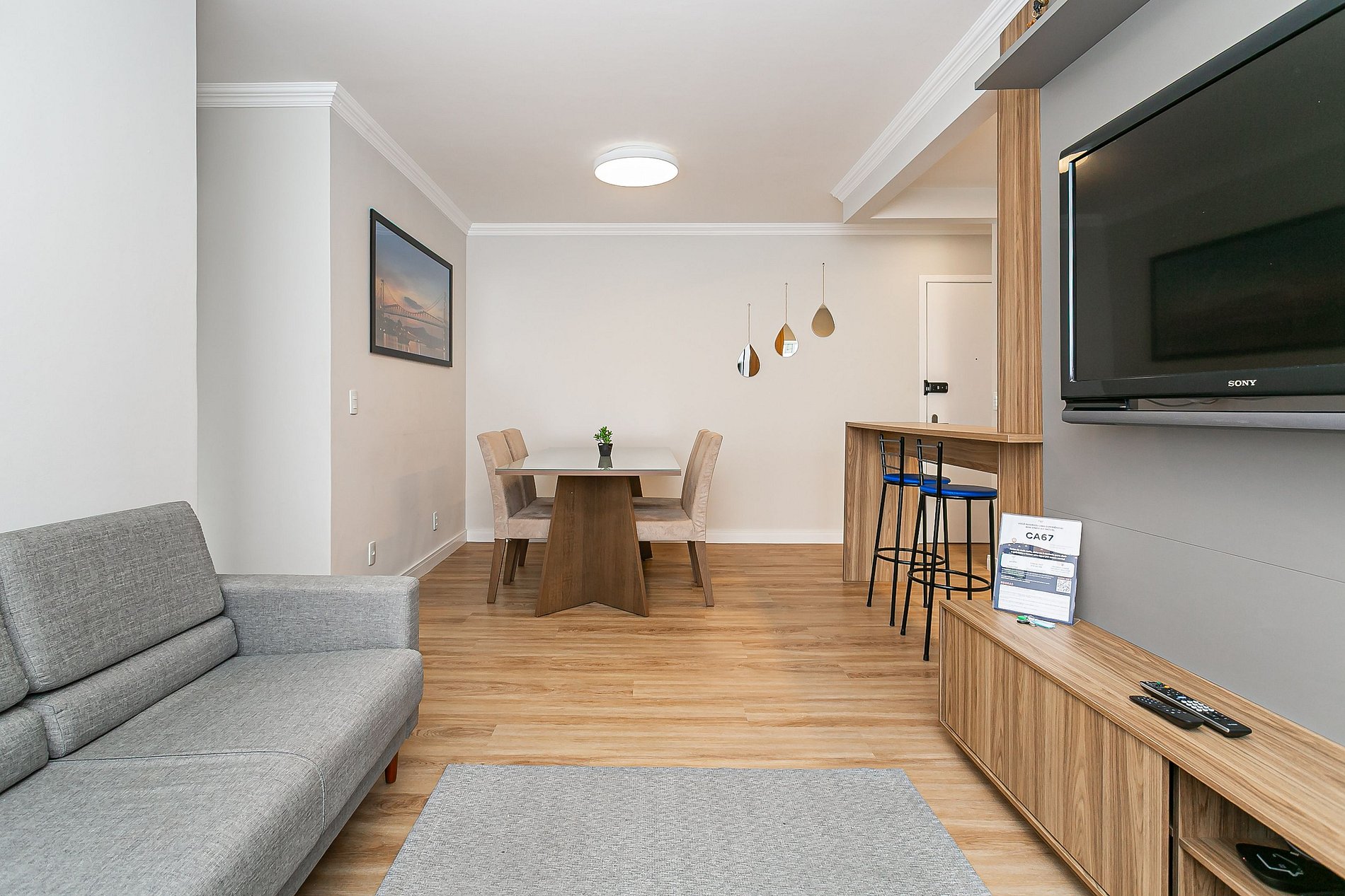 - Sala equipada com Smart TV de 50 polegadas