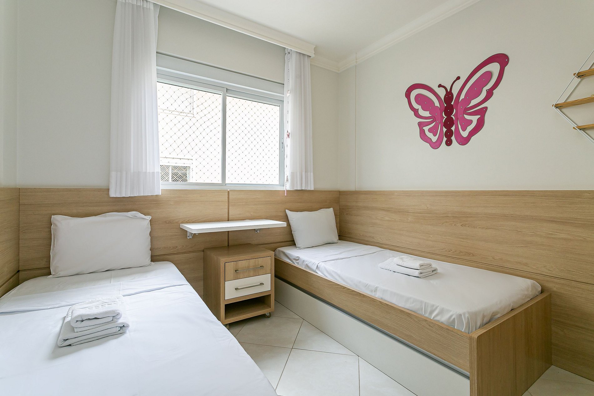 O imóvel de 114,90m² conta com uma suíte com uma CAMA DE CASAL e TV DE 24", um quarto com uma CAMA DE CASAL, um quarto com duas CAMAS DE SOLTEIRO, uma sala equipada com TV DE 32", além de uma varanda com churrasqueira. Todos os quartos contam com AC SPLIT (QUENTE/FRIO).