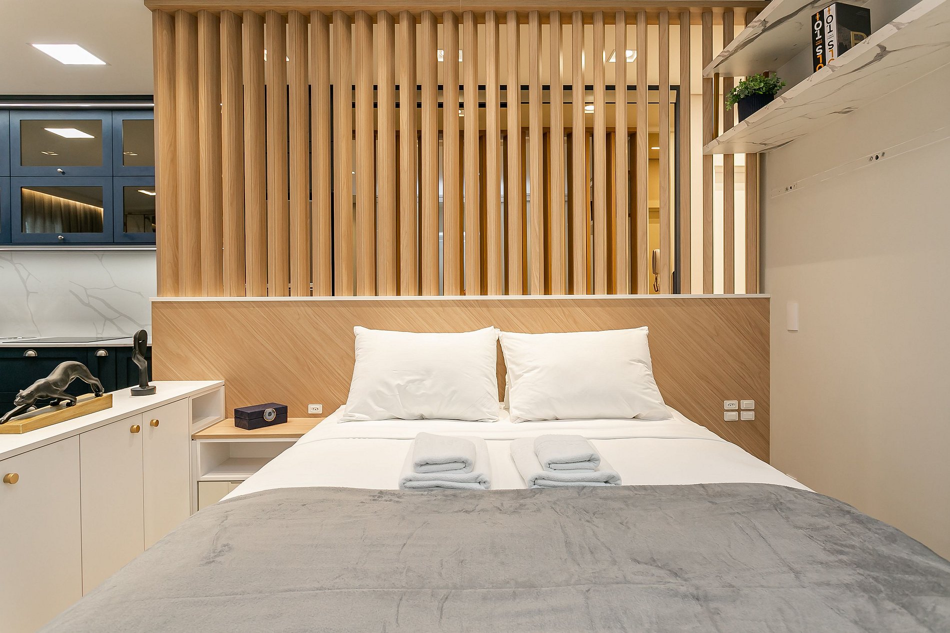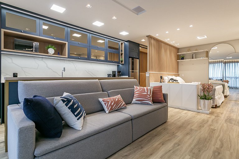 O imóvel de 51m² conta com uma CAMA QUEEN, um SOFÁ-CAMA DE CASAL, SMART TV DE 60" e AR CONDICIONADO SPLIT.