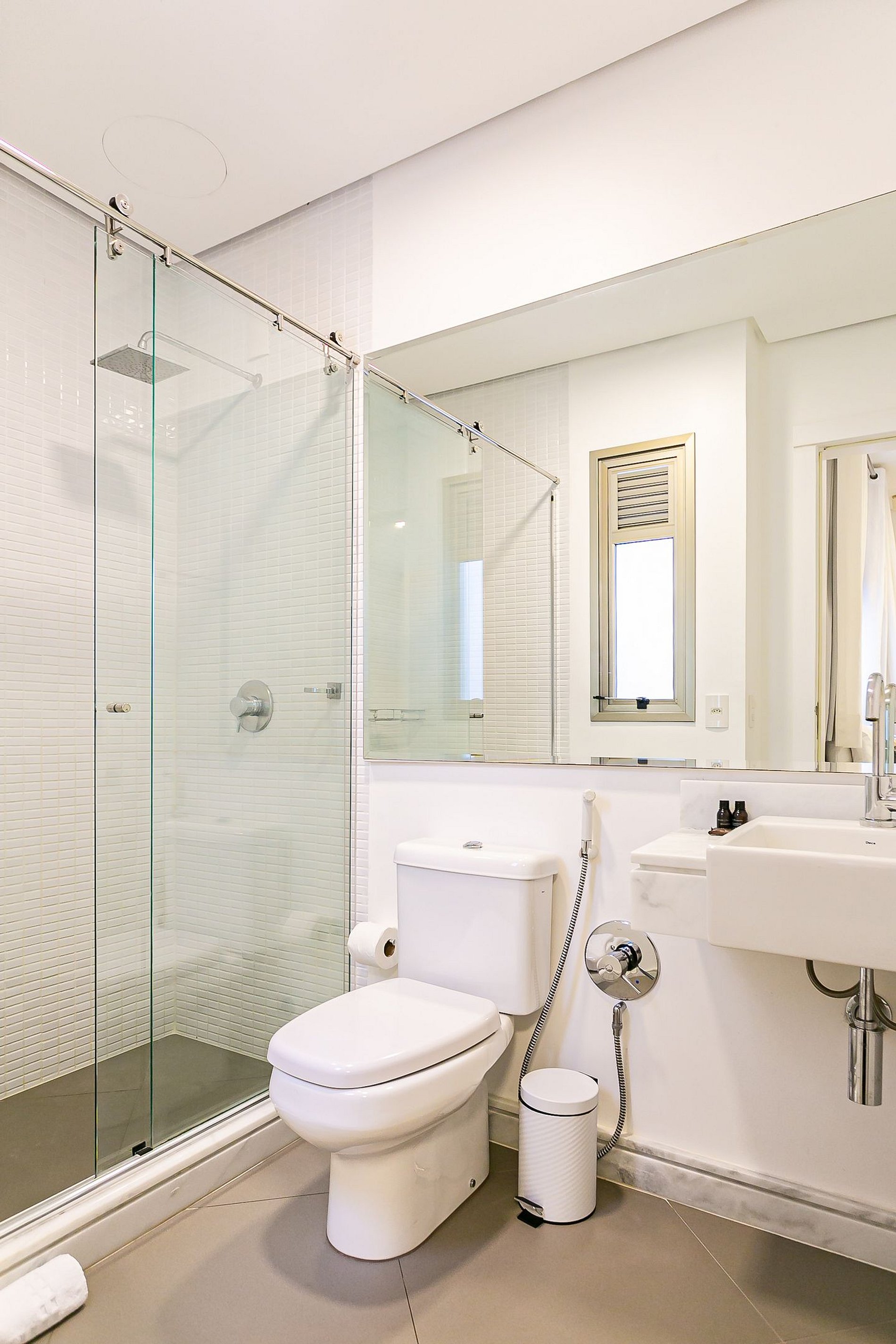 - Todos os banheiros possuem amenities: um shampoo, um condicionador, um sabonete e um rolo de papel higiênico.