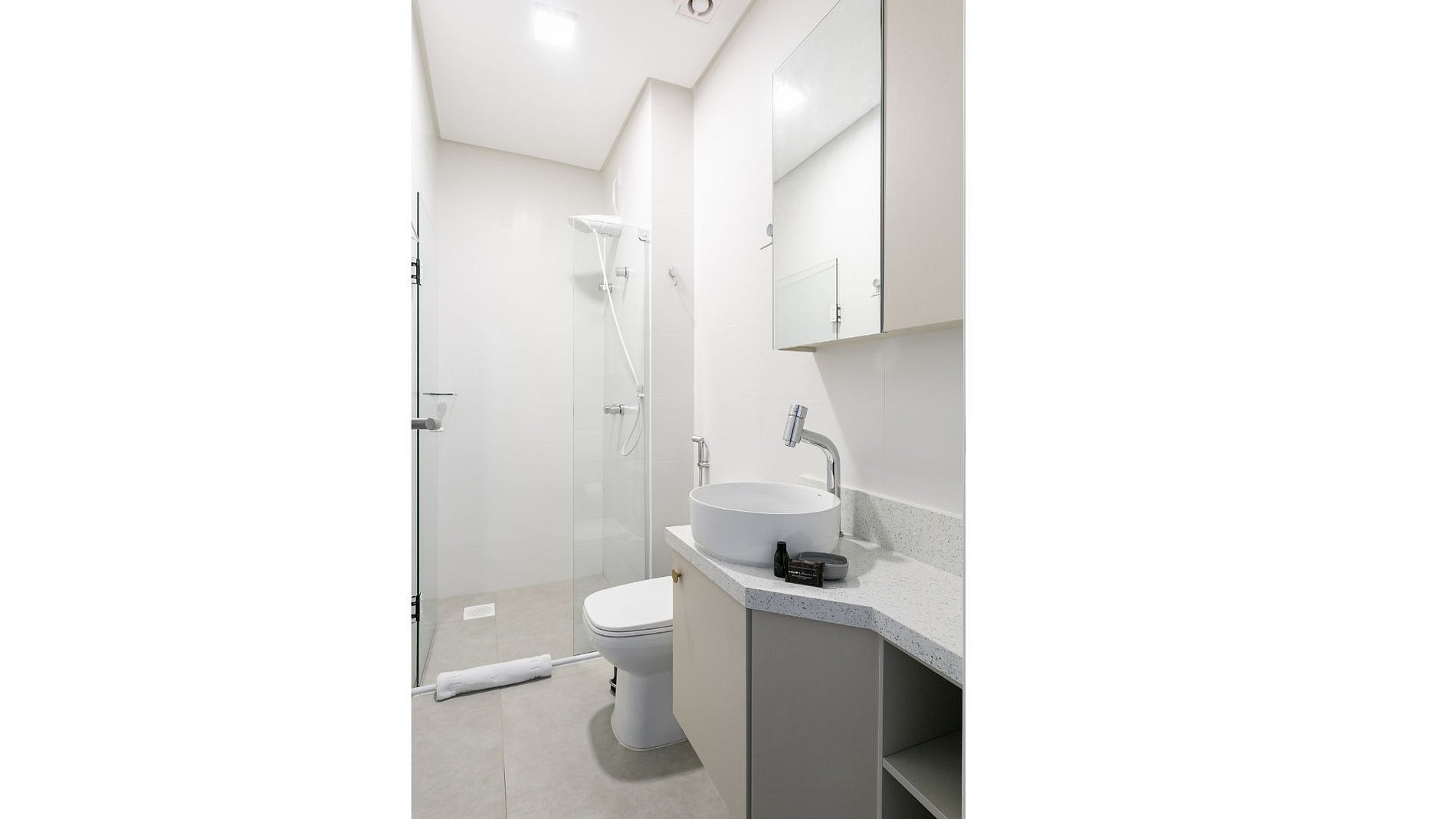 - Todos os banheiros possuem amenities: um shampoo, um condicionador, um sabonete e um rolo de papel higiênico.