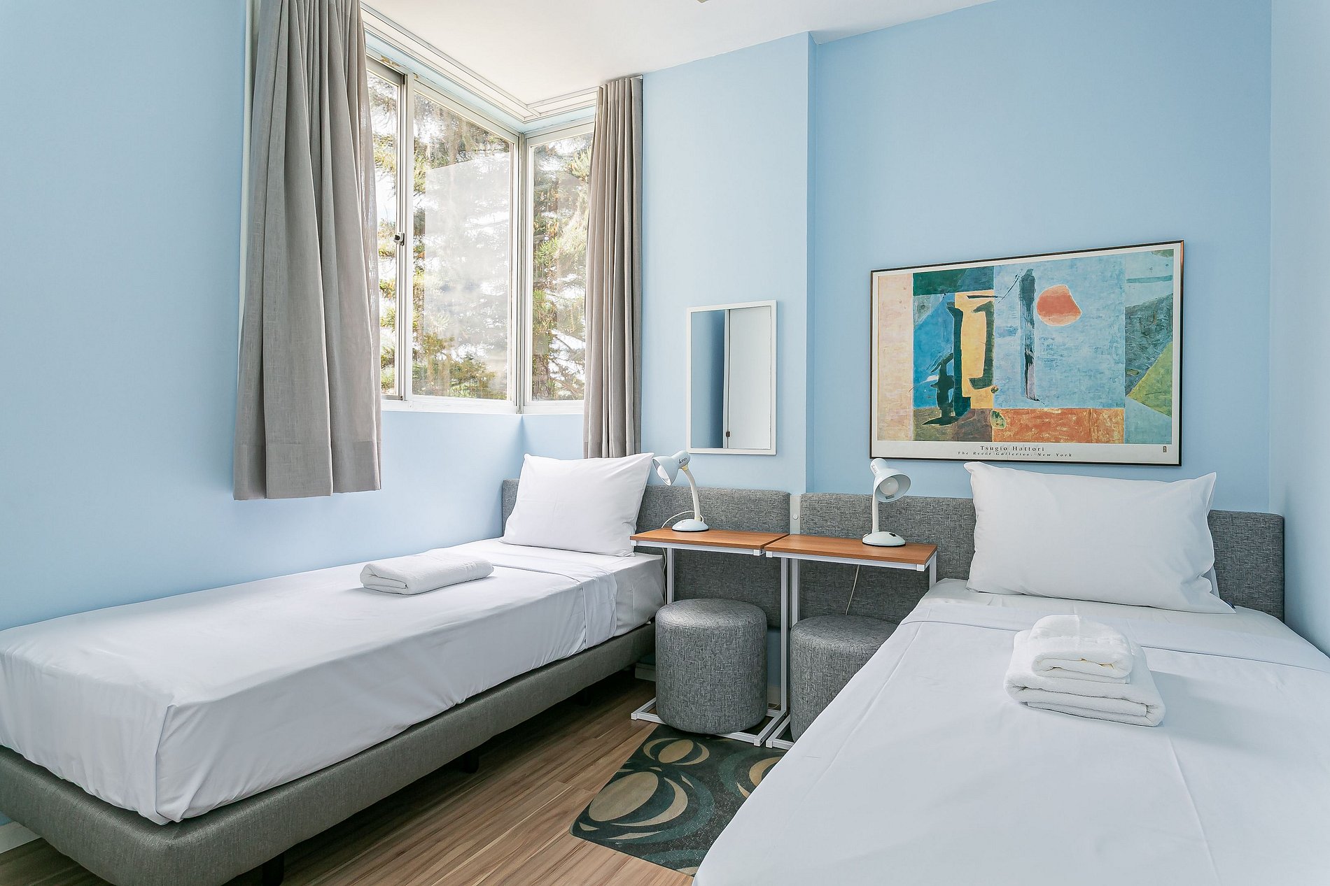 - Cada hóspede recebe uma toalha de banho e uma toalha de rosto.