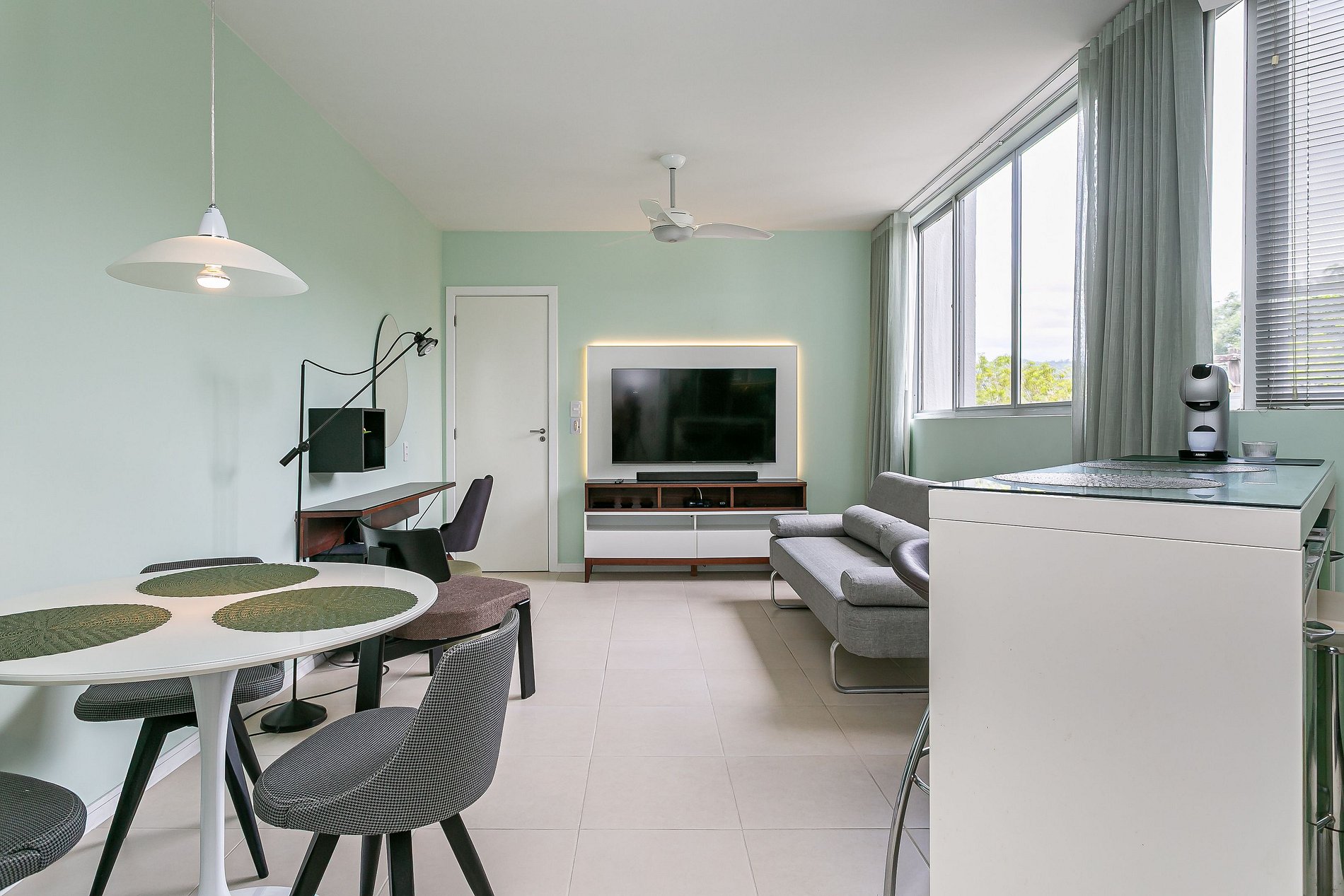 O apartamento fica localizado no Itacorubi, bairro tranquilo e completo, com padarias, cafés, restaurantes e supermercados.