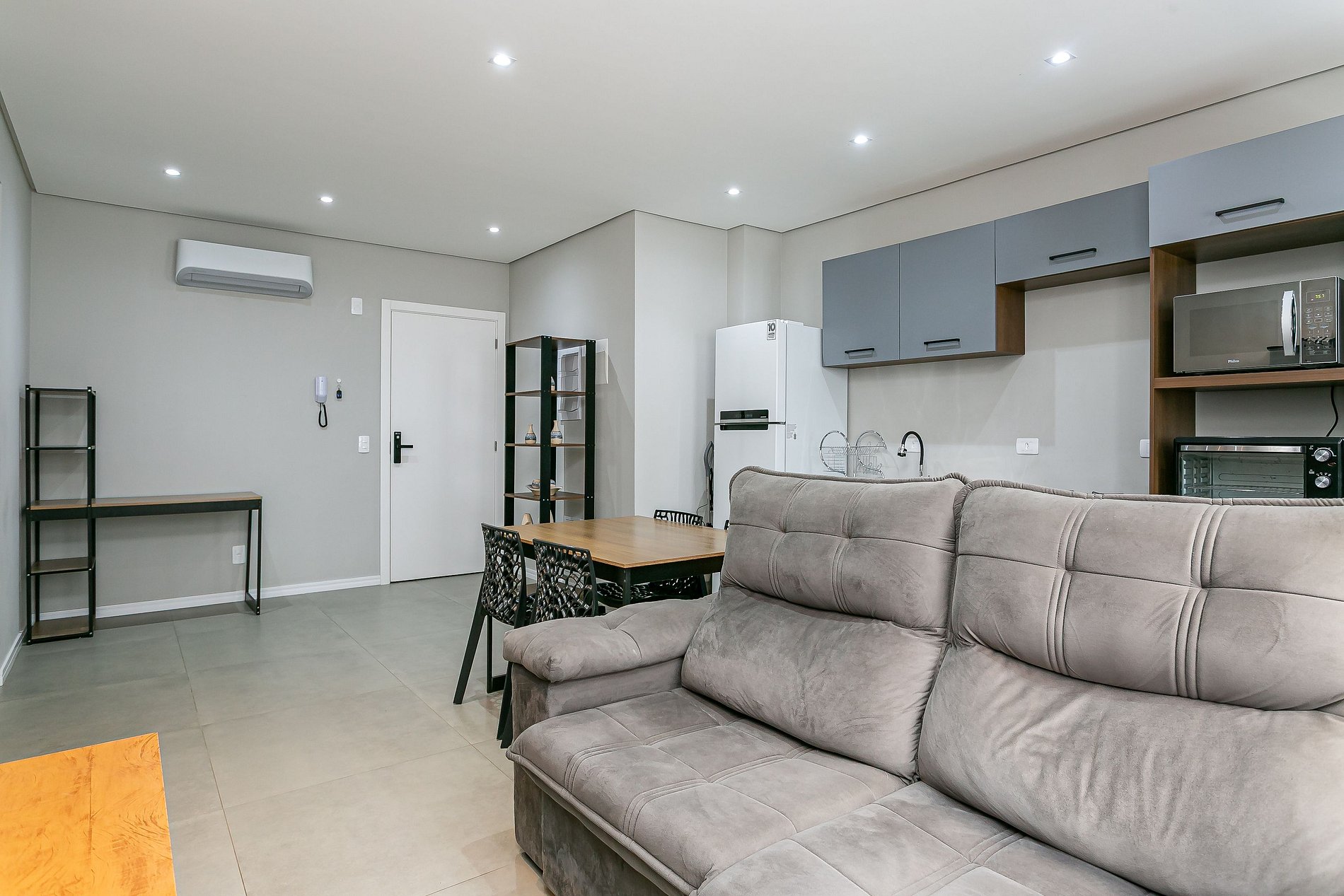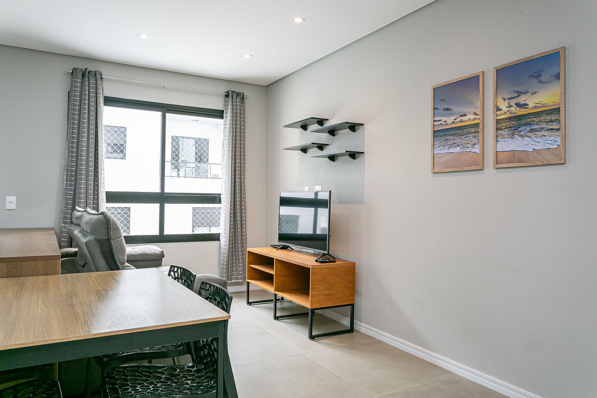 O imóvel de 48,15m² conta com um quarto com uma CAMA CASAL, E uma SALA DE ESTAR COM SMART TV DE 40".