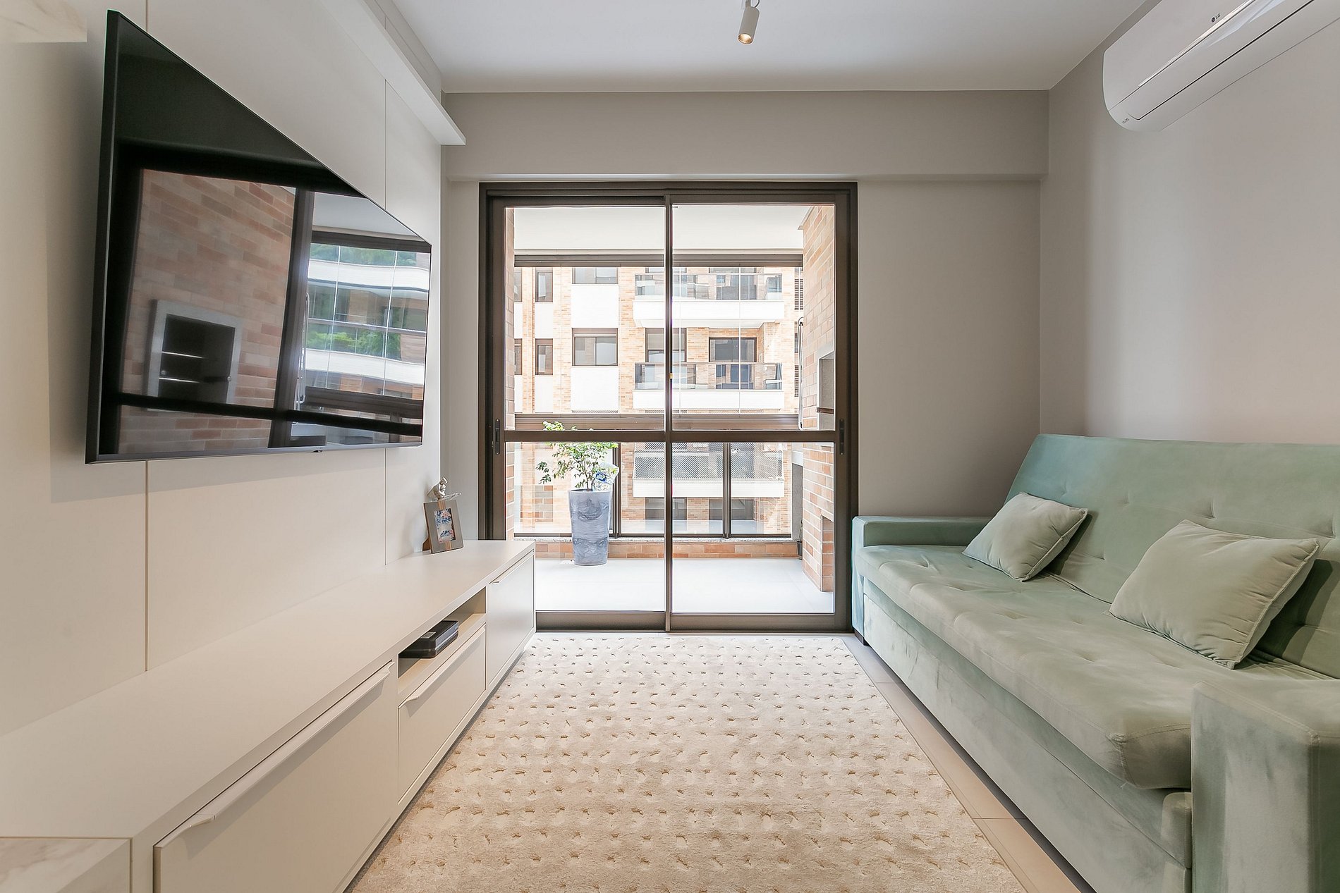 - Sala equipada com Smart TV e Ar-condicionado SPLIT