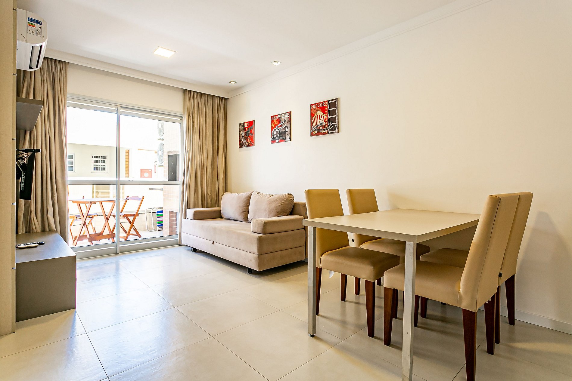 - Sala equipada com um sofá-cama de CASAL, TV com BoxTV e Ar-condicionado SPLIT