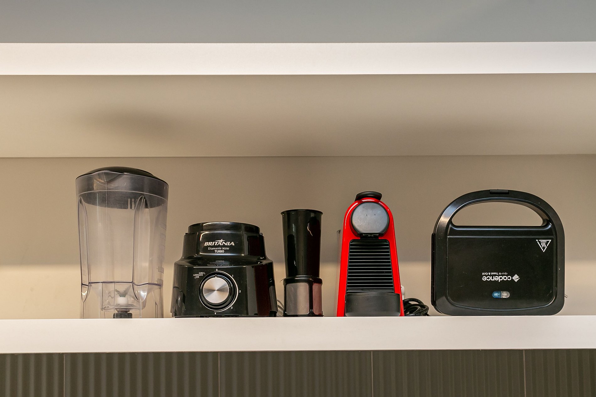 - Cozinha completa com cafeteira Nespresso de cápsula, geladeira com congelador, liquidificador, micro-ondas, sanduicheira, utensílios de cozinha e jogo de panelas