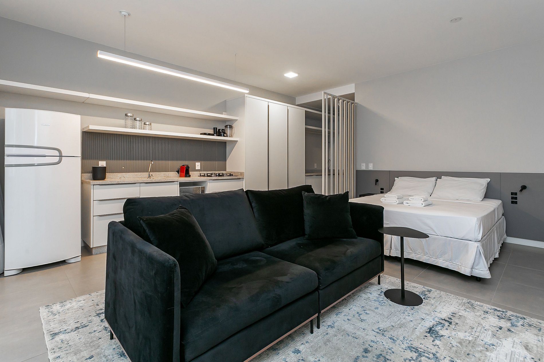3º - Temos diversas unidades de studios neste prédio, sendo todos projetados para você ter uma ótima estadia — o padrão dos móveis e facilidades são os mesmos, entretanto a vista, layout e design PODEM VARIAR.