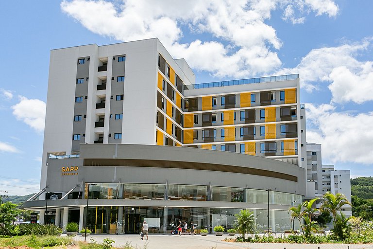 O studio fica localizado no Córrego Grande, bairro tranquilo e completo, com padarias, cafés, restaurantes e supermercados.