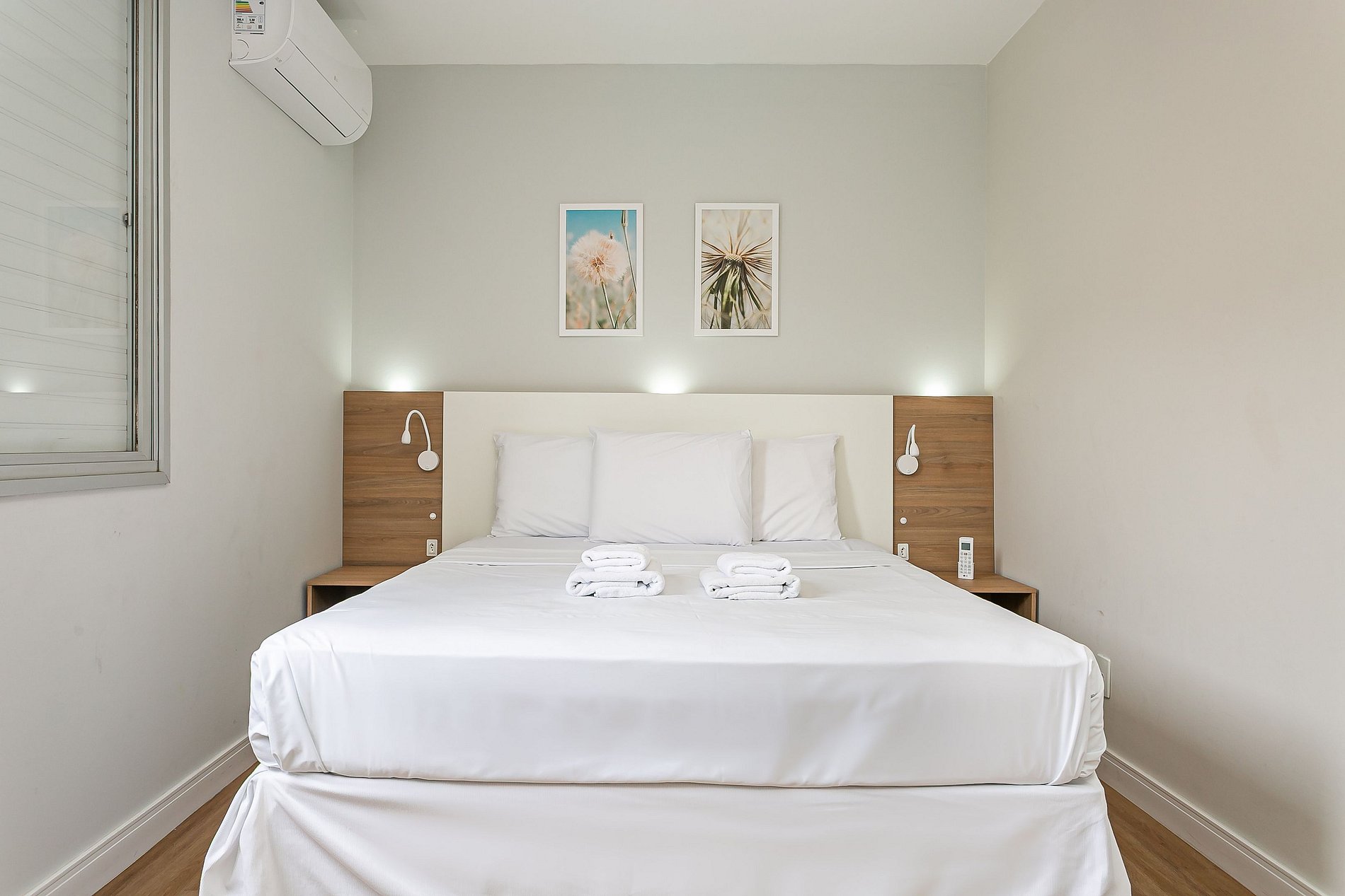 O imóvel de 60m² conta com um quarto com cama QUEEN, um quarto com duas camas de SOLTEIRO e uma sala de estar equipada com Smart TV de 50". Todos os quartos são equipados com AC SPLIT.