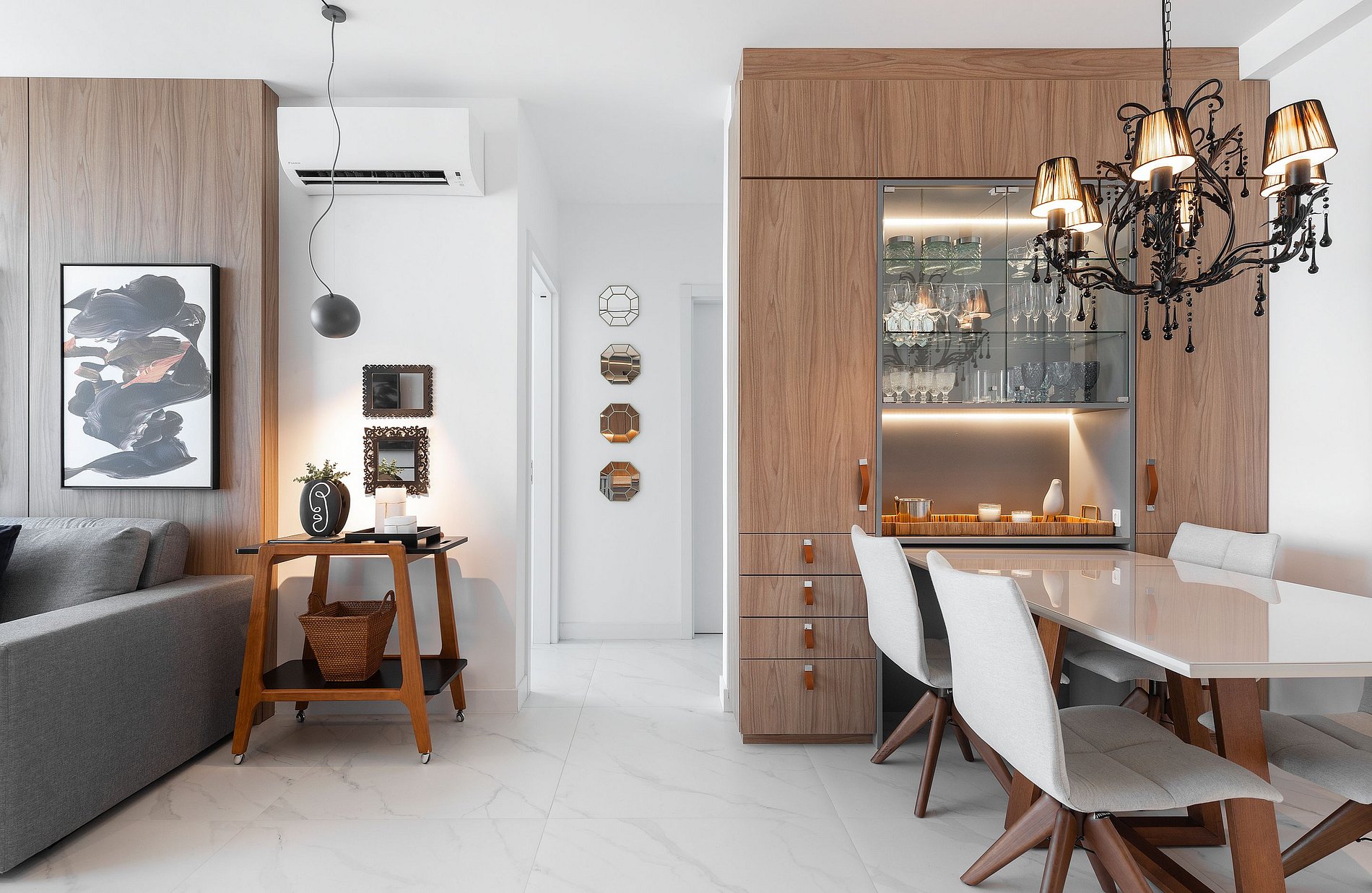 O imóvel de 72m² conta com duas suítes e uma sala de estar com Smart TV de 55". Todos os cômodos são equipados com Ar-condicionado SPLIT.