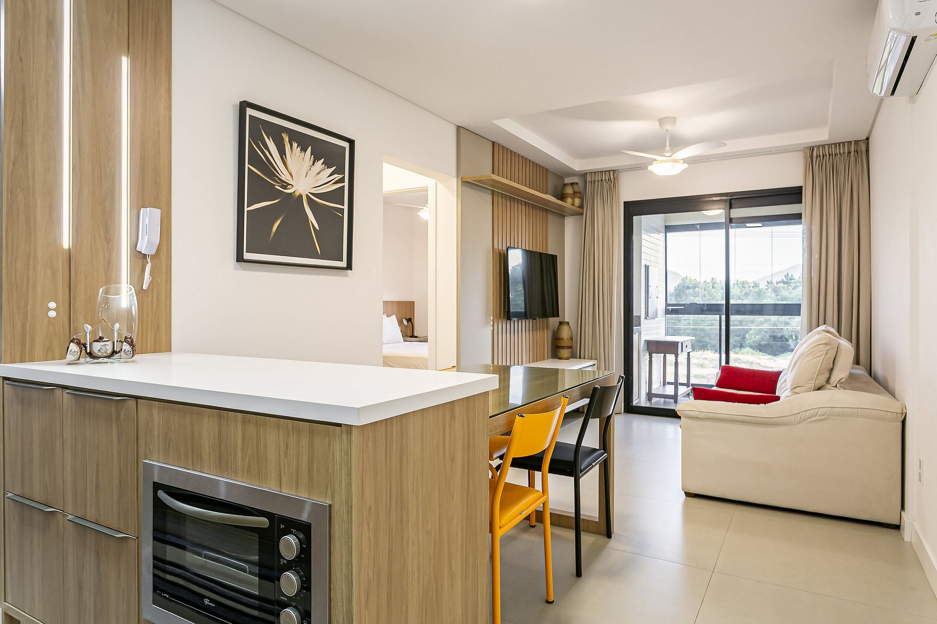 - SALA EQUIPADA COM SOFÁ-CAMA DE SOLTEIRO, SMART TV DE 50" E AC SPLIT (QUENTE E FRIO)