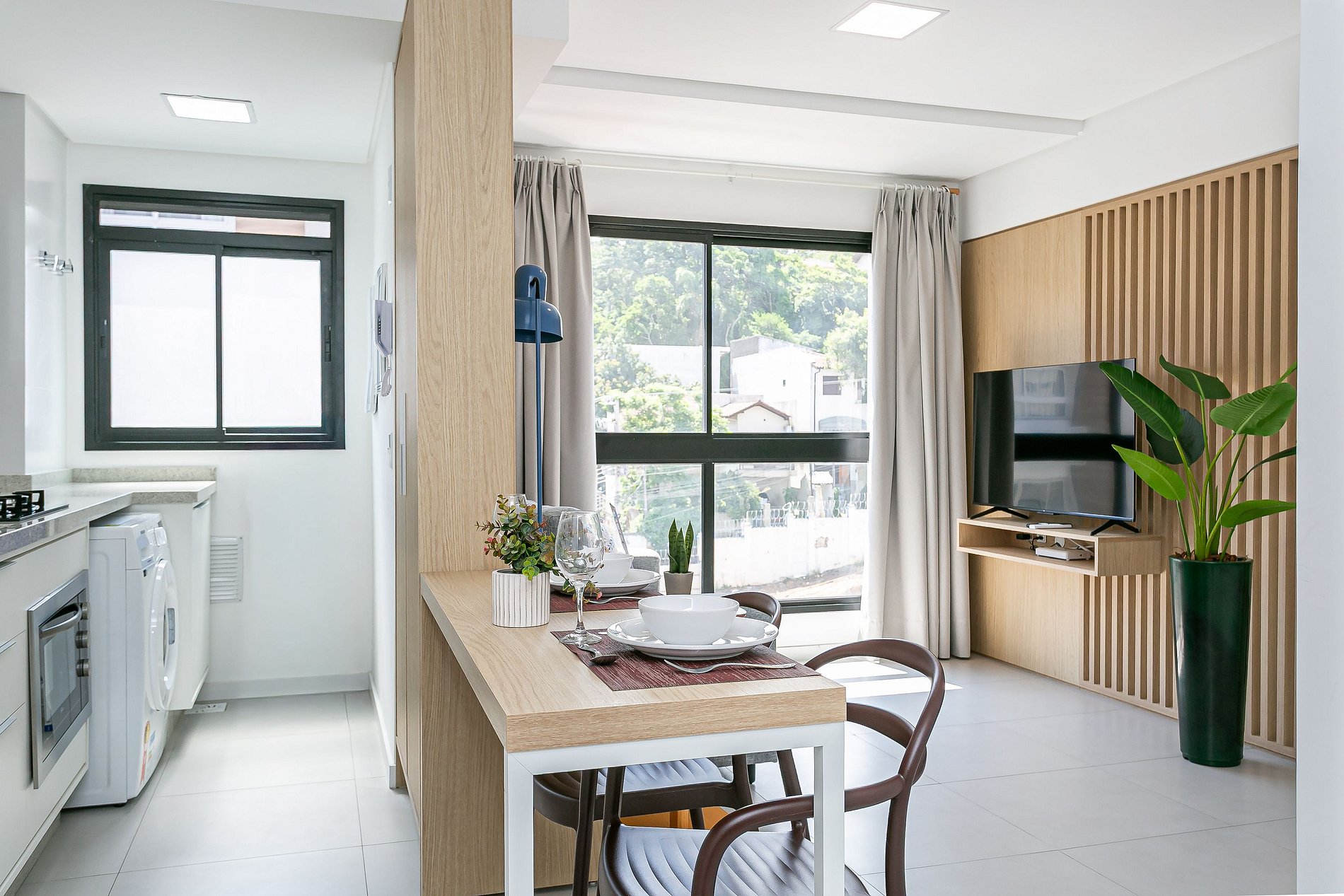 O imóvel de 41,19 m² conta com CAMA QUEEN, MÁQUINA DE LAVAR (Lava e Seca), SMART TV de 50" E AC SPLIT (QUENTE E FRIO).