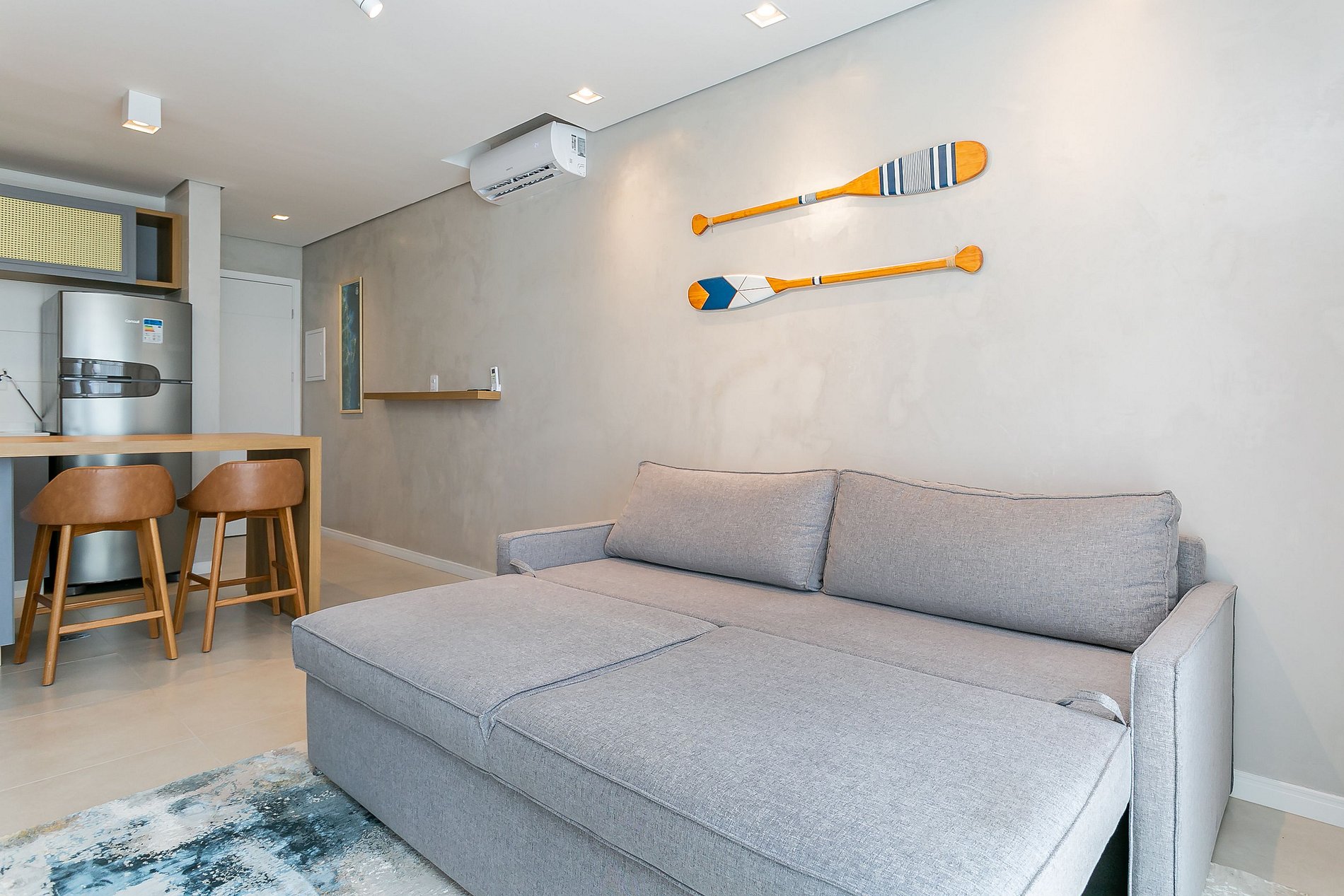 O imóvel de 42m² conta com uma cama QUEEN, um sofá-cama de SOLTEIRO e uma Smart TV. Além disso, o studio conta com um Ar-condicionado SPLIT.