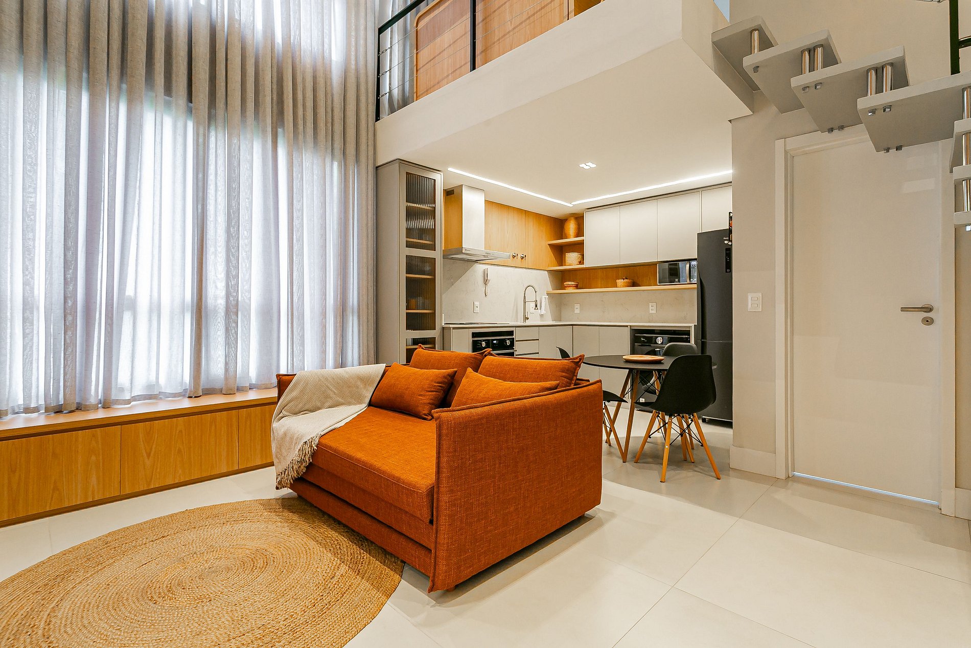 Loft totalmente mobiliado e conta com: