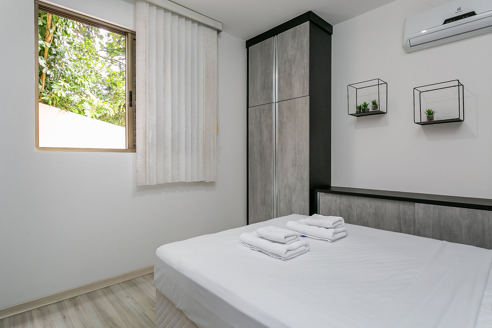 O imóvel de 78,43m² conta com uma suíte com uma cama de CASAL e ar-condicionado SPLIT, um quarto com cama de casal e um quarto escritório com mesa para notebook e uma sala de estar com TV com Chromecast.
