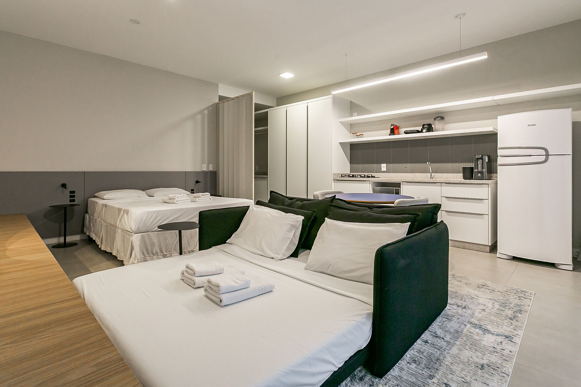 Nossos studios foram projetados com atenção aos detalhes, para que você possa fazer daqui o seu lugar.