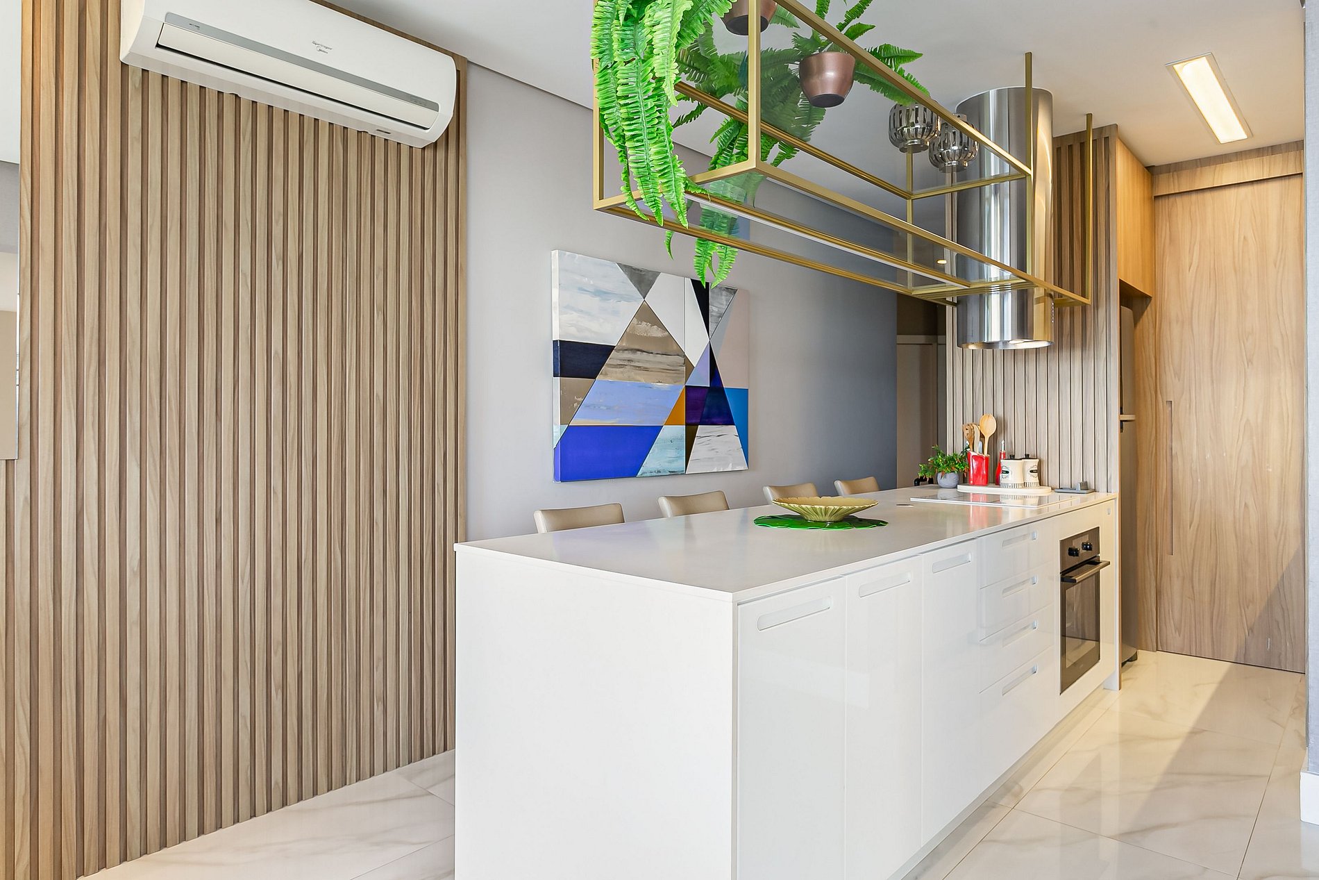 - Cozinha completa com air fryer, cafeteira, geladeira com congelador, liquidificador, máquina lava-louças, micro-ondas, sanduicheira, utensílios de cozinha e jogo de panelas