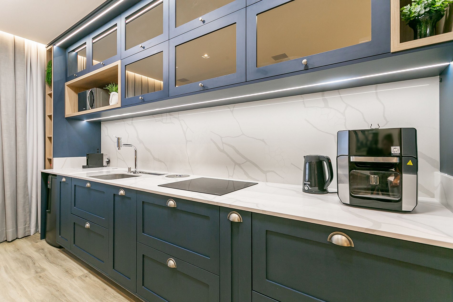 - Cozinha completa com mini adega, cafeteira, geladeira com congelador, liquidificador, micro-ondas, sanduicheira, utensílios de cozinha e jogo de panelas