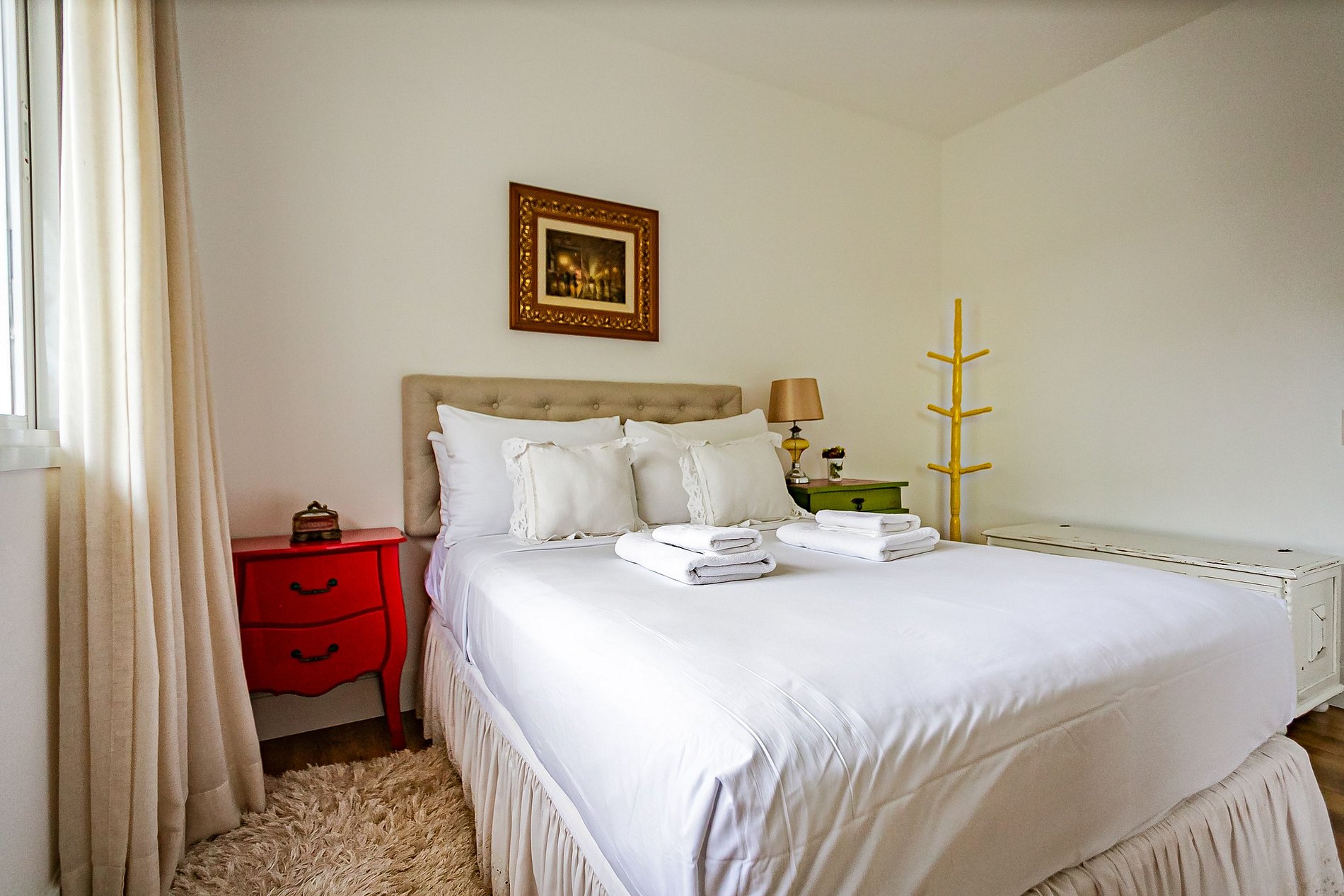 - Todas as camas possuem roupa de cama completa.