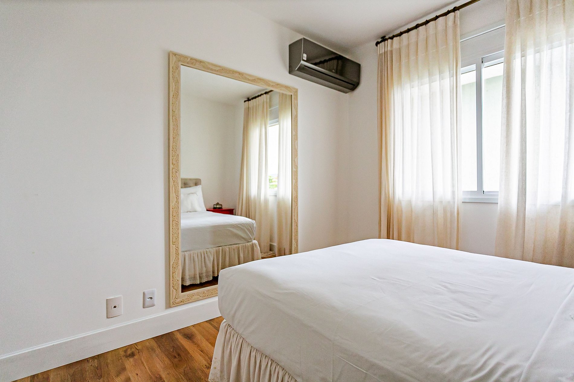 O imóvel possui 230m² de área útil e conta com uma suíte com cama QUEEN, um quarto com cama de CASAL e uma sala de estar equipada com uma TV com ChromeCast. Todos os cômodos possuem Ar-condicionado SPLIT.