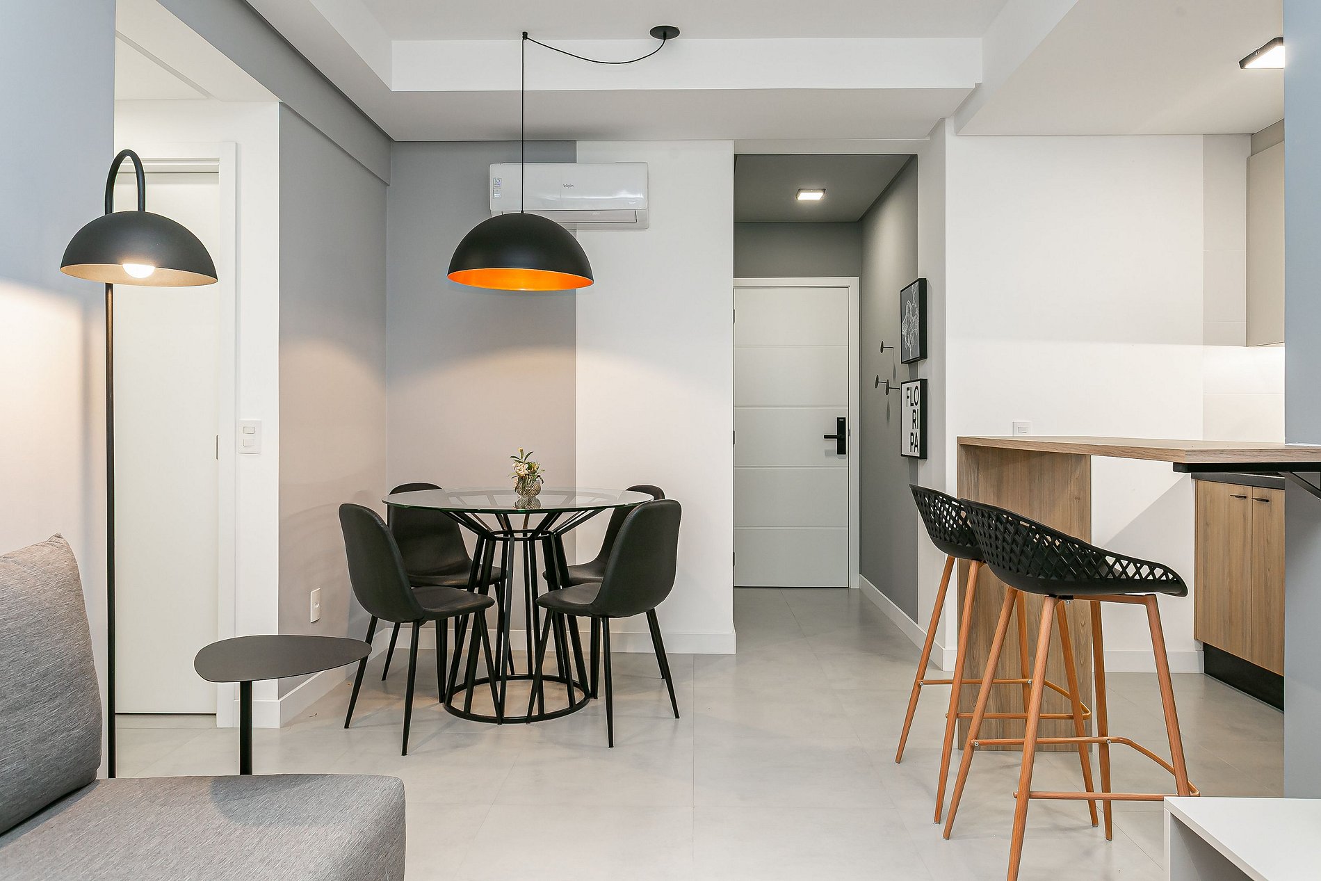 O imóvel de 68m² conta com duas suítes com CAMA DE CASAL, uma sala de estar com SMART TV DE 50" e uma varanda com churrasqueira. Todos os cômodos possuem AC SPLIT.