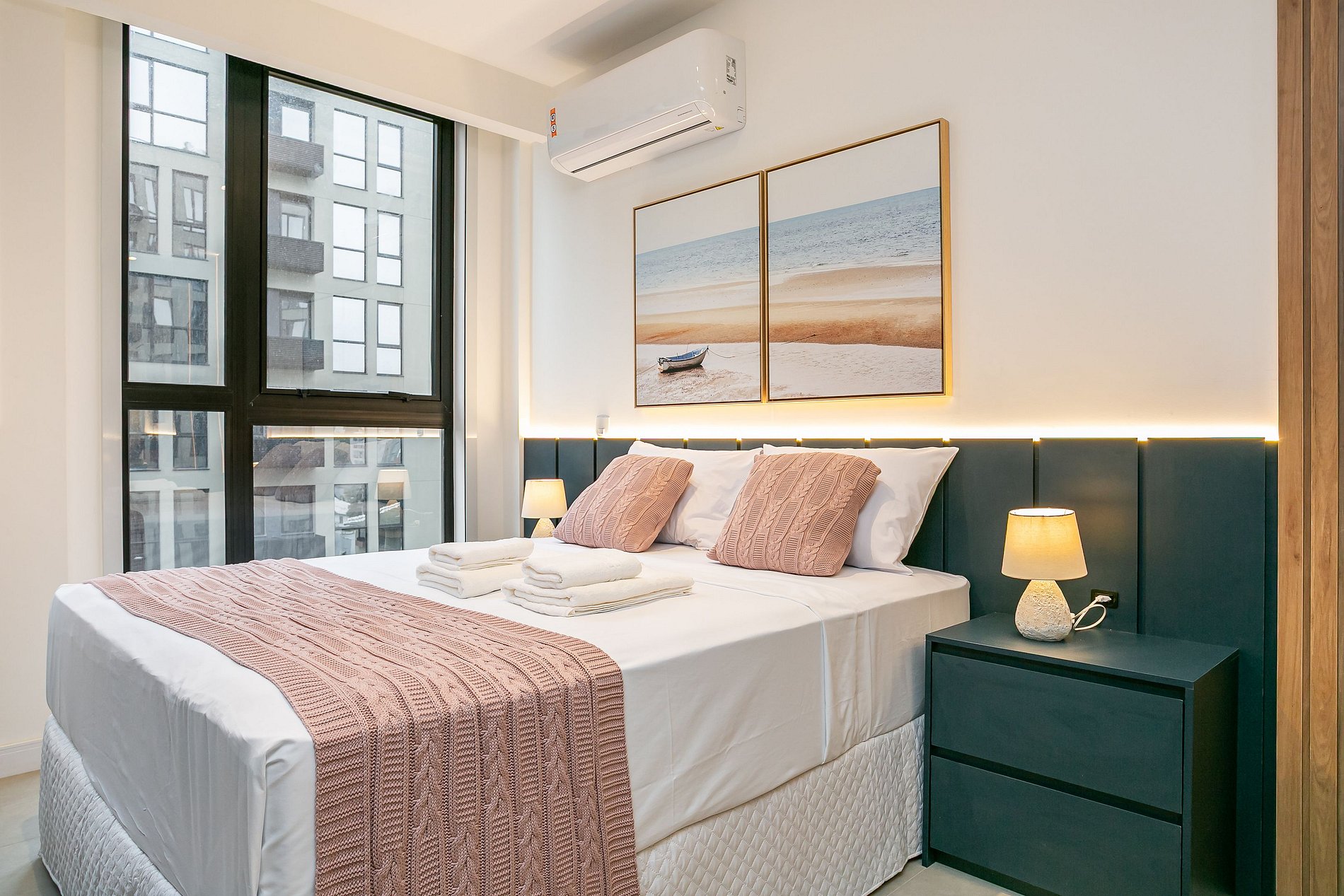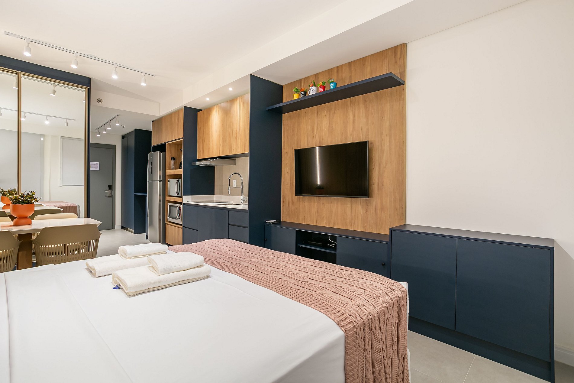 O imóvel de 31,17 m² conta com uma CAMA QUEEN, SMART TV DE 40" E AC SPLIT (QUENTE E FRIO).