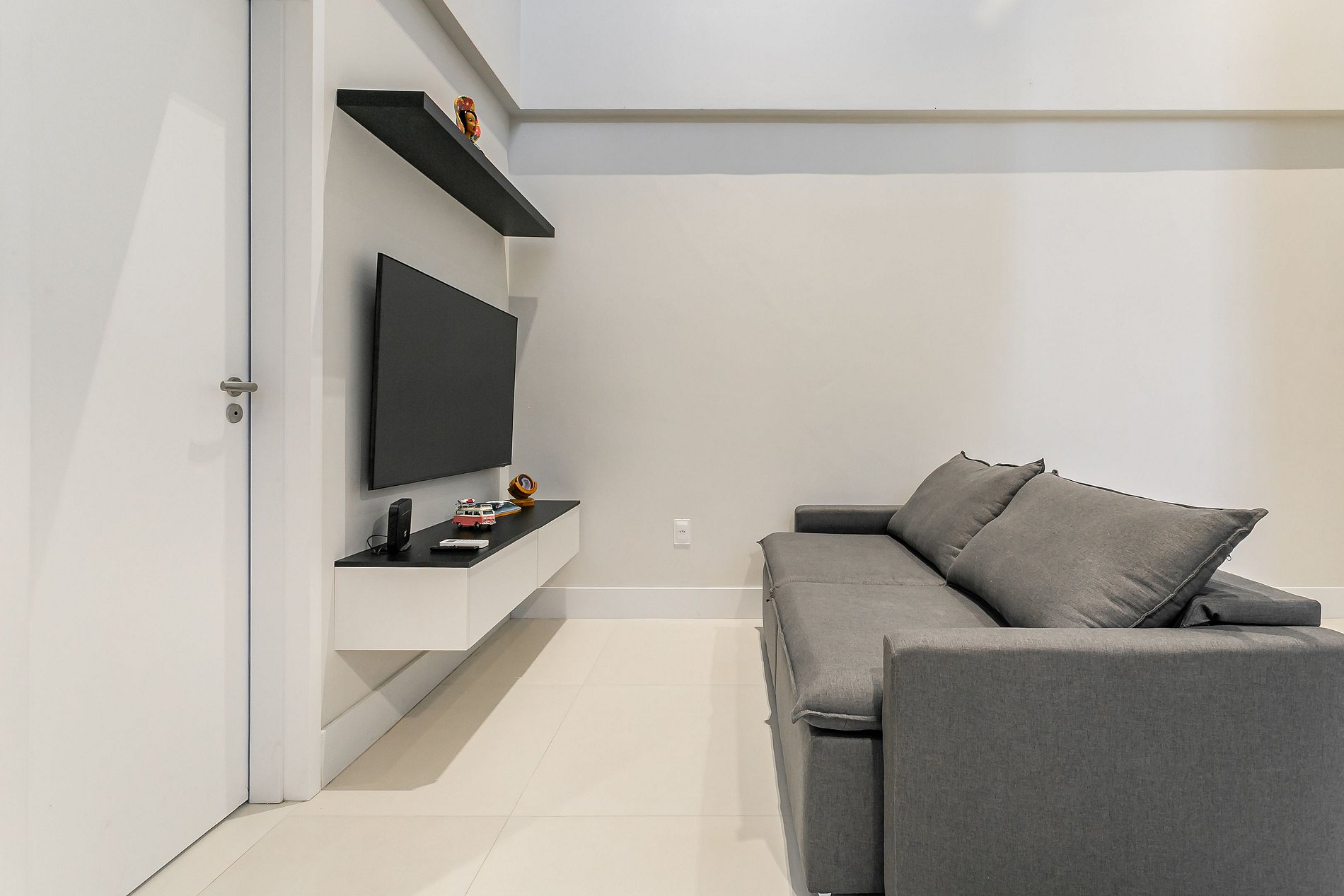 - SALA DE ESTAR COM SOFÁ-CAMA DE CASAL, SMART TV DE 40" E AC SPLIT (SÓ FRIO)