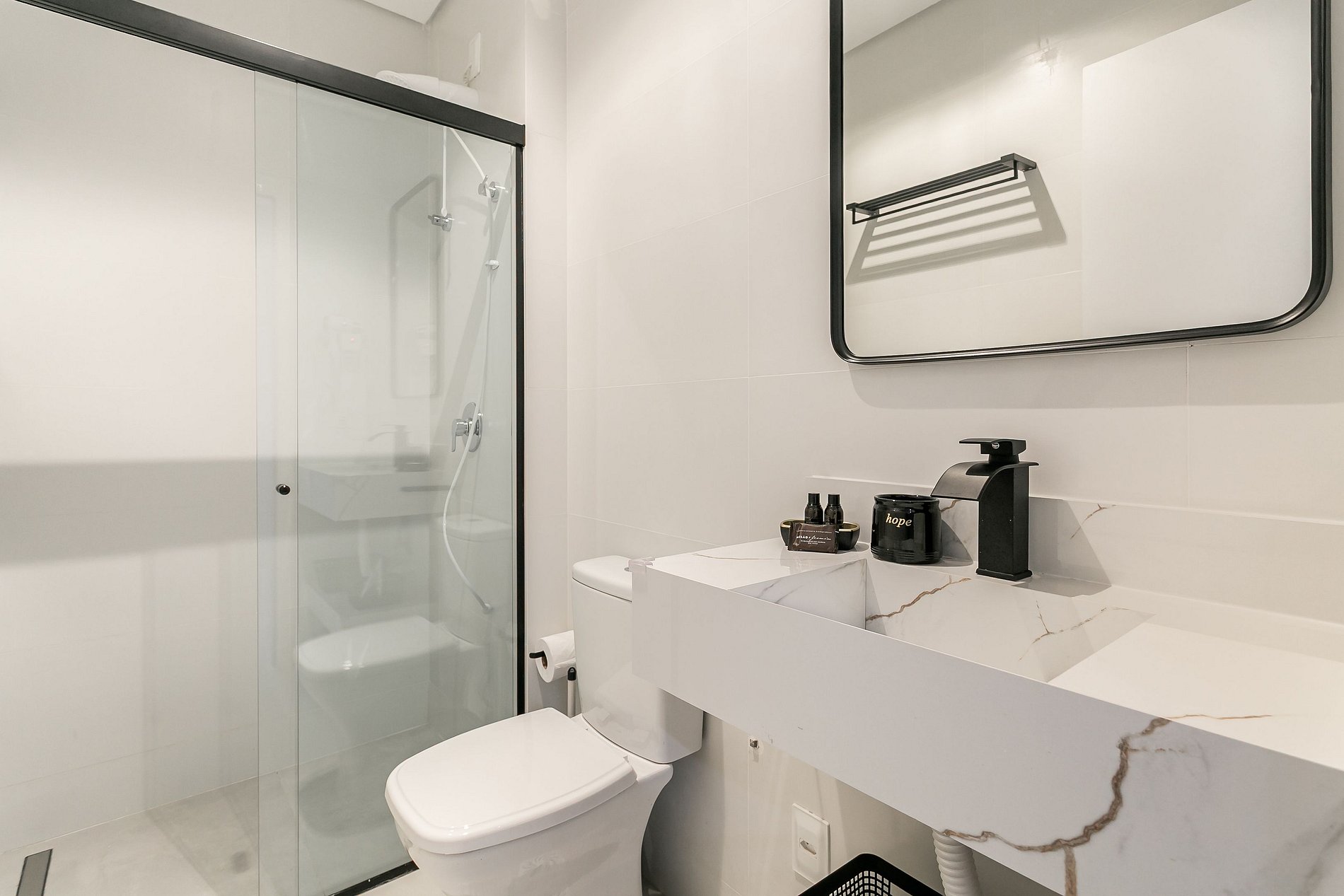 - Todos os banheiros possuem amenities: um shampoo, um condicionador, um sabonete e um rolo de papel higiênico.