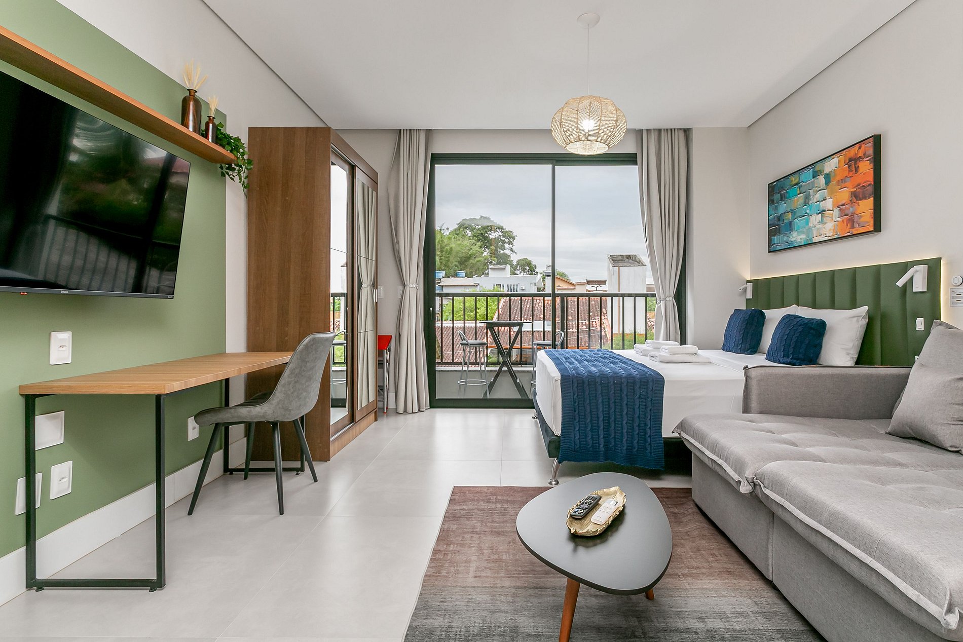 - SALA DE ESTAR COM SOFÁ-CAMA DE CASAL, SMART TV DE 50" E AC SPLIT (SÓ FRIO)