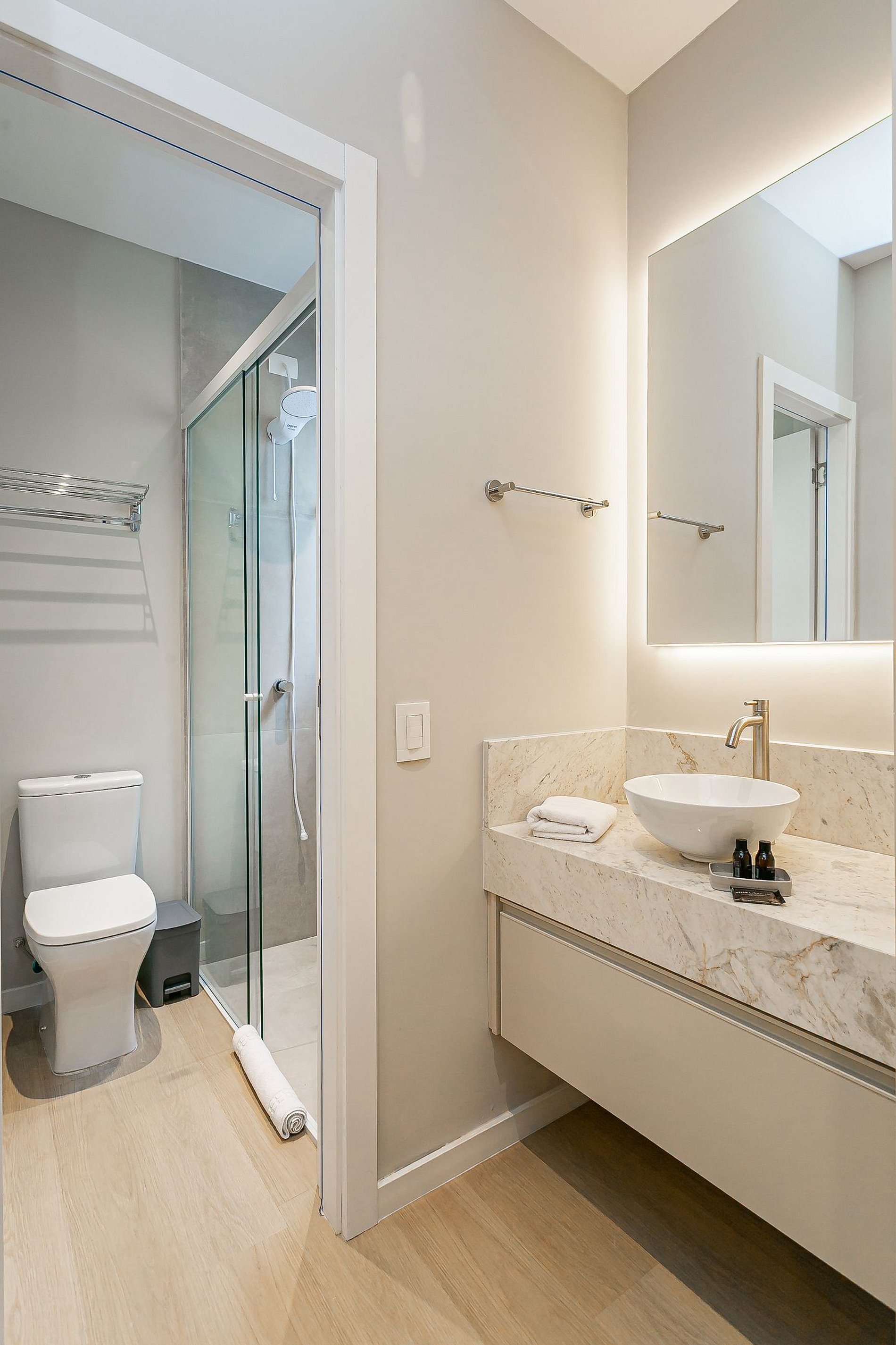 -Todos os banheiros possuem um kit de boas vindas que contém amenities: