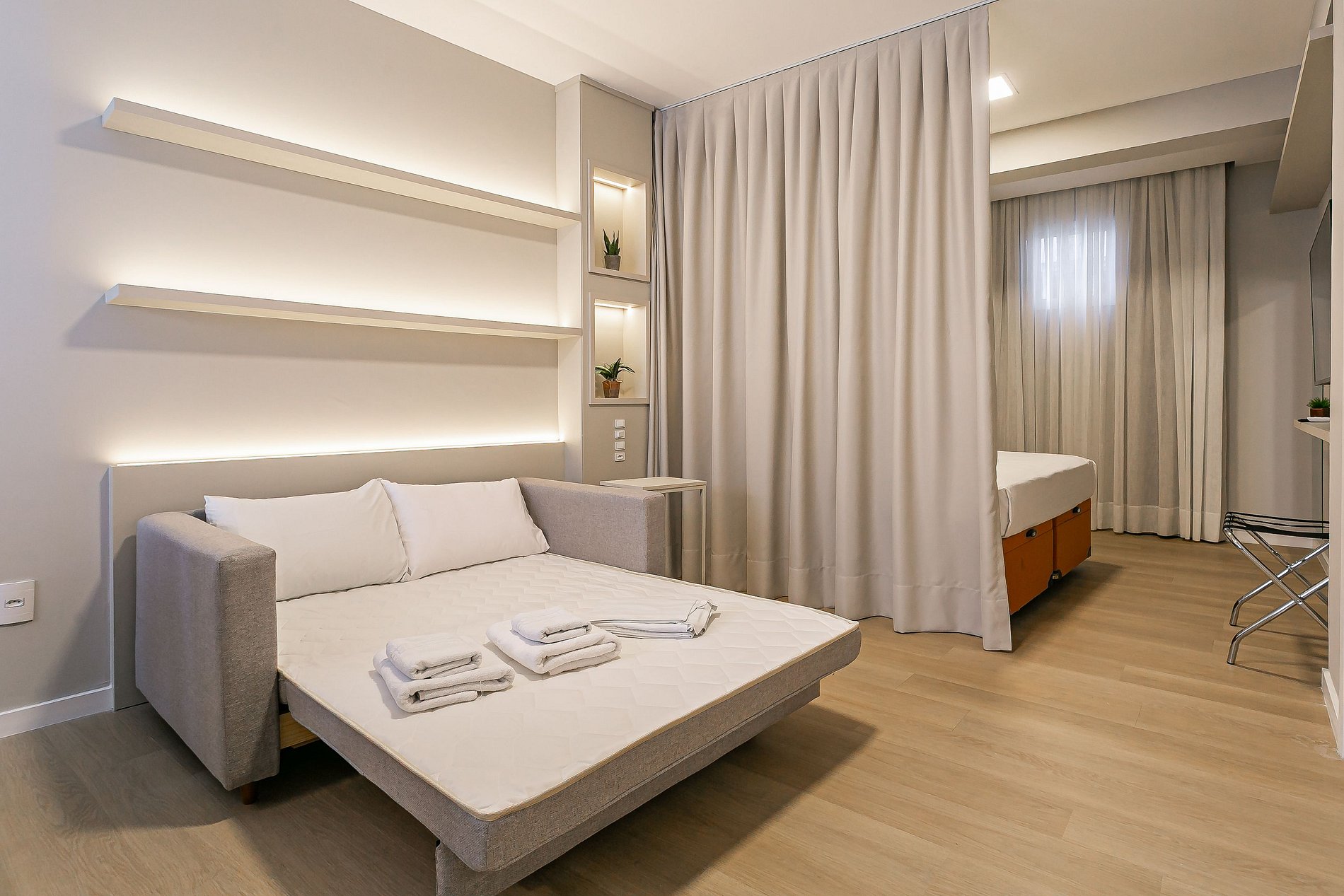 Nosso espaço procura trazer as facilidades e conveniências de um hotel com o conforto de um apartamento.