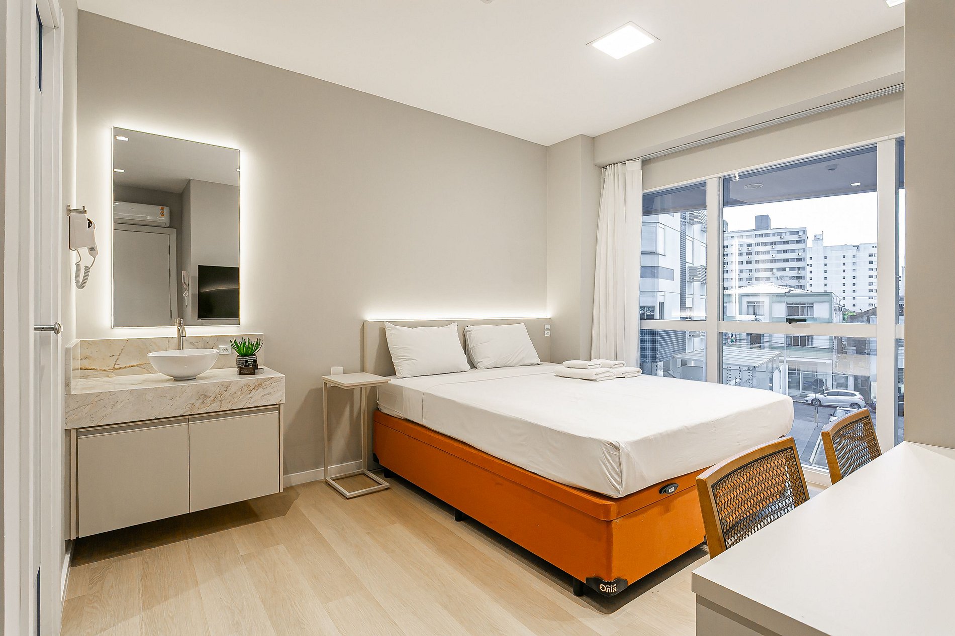 O Studio está localizado no Centro de Florianópolis, em um empreendimento recém inaugurado e totalmente pensado para trazer uma experiência tranquila e eficiente aos nossos hóspedes.
