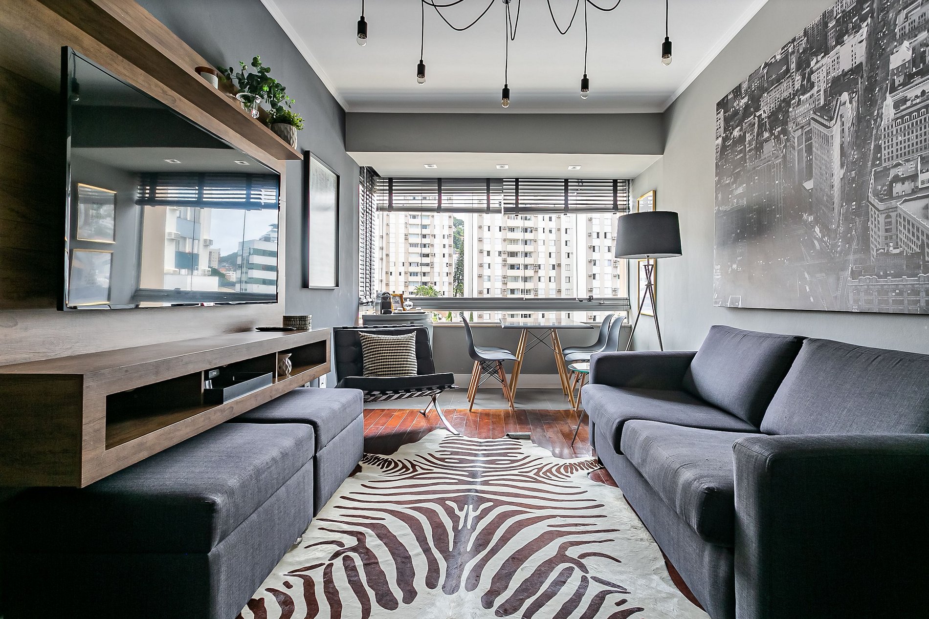 - Sala equipada com Smart TV 4K de 55 polegadas