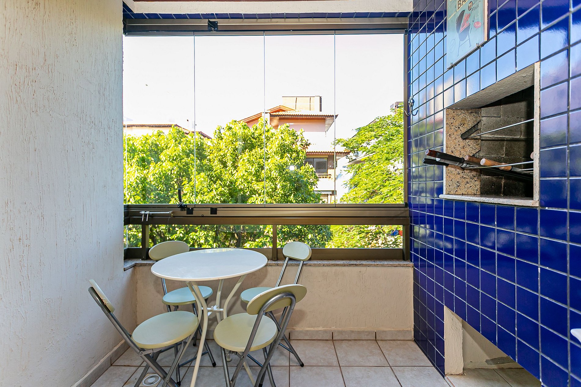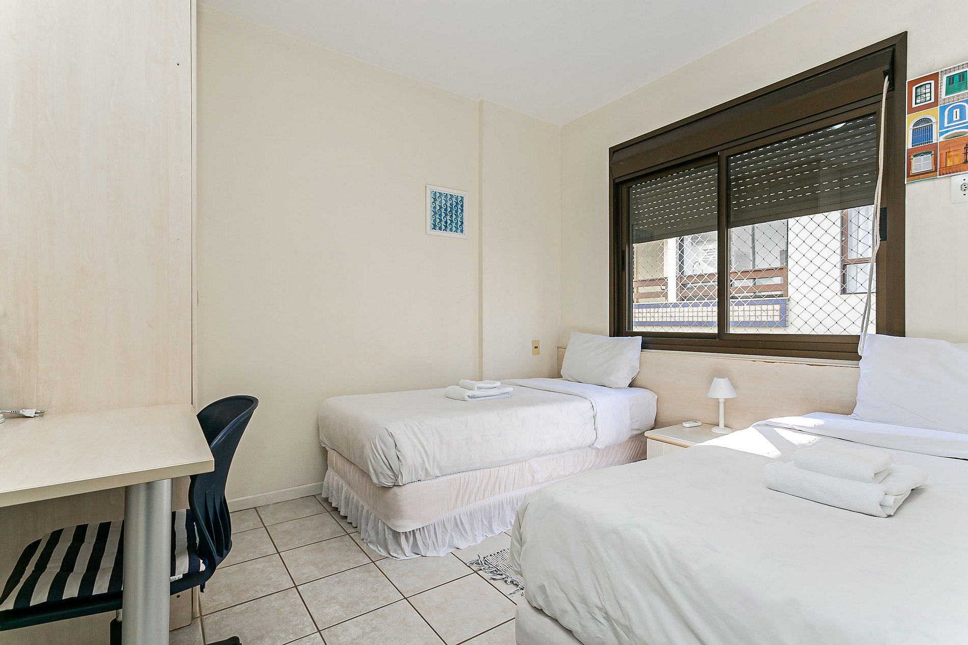 O imóvel de 100m² conta com um quarto com cama de CASAL e um quarto com duas camas de SOLTEIRO, ambos com Ar Condicionado SPLIT. Além disso, oferece uma varanda com churrasqueira e uma sala com TV contendo canais por assinatura.