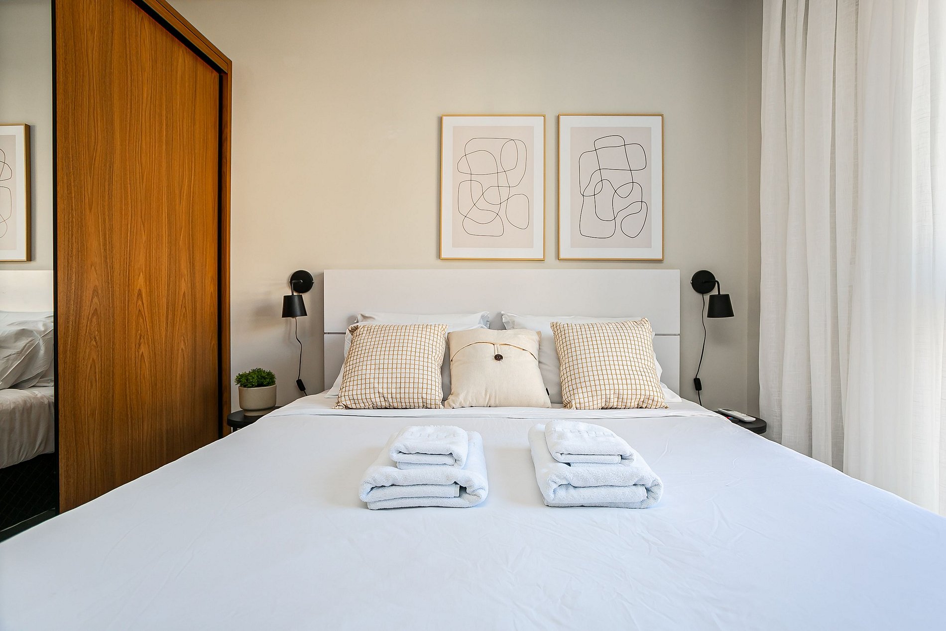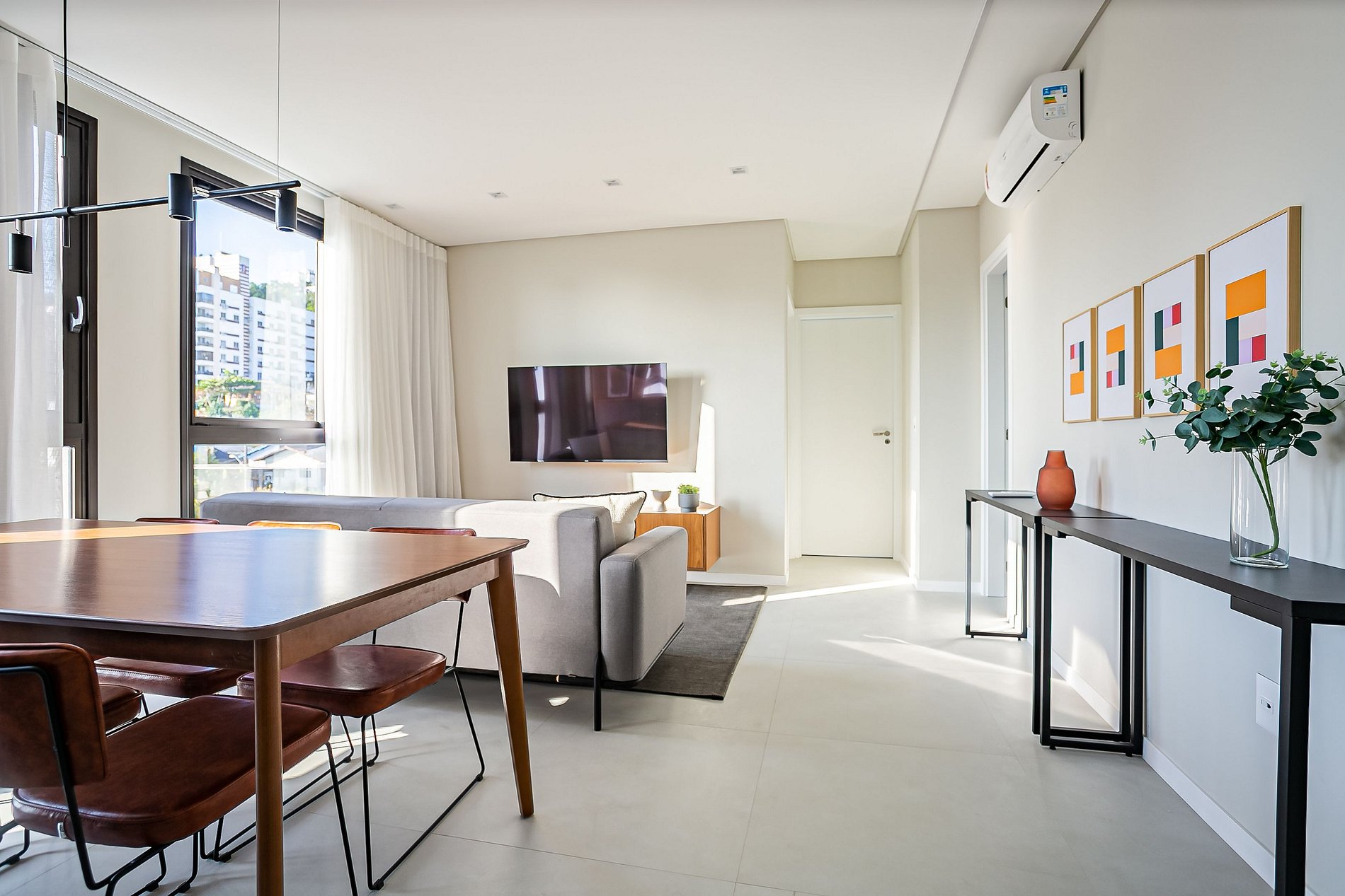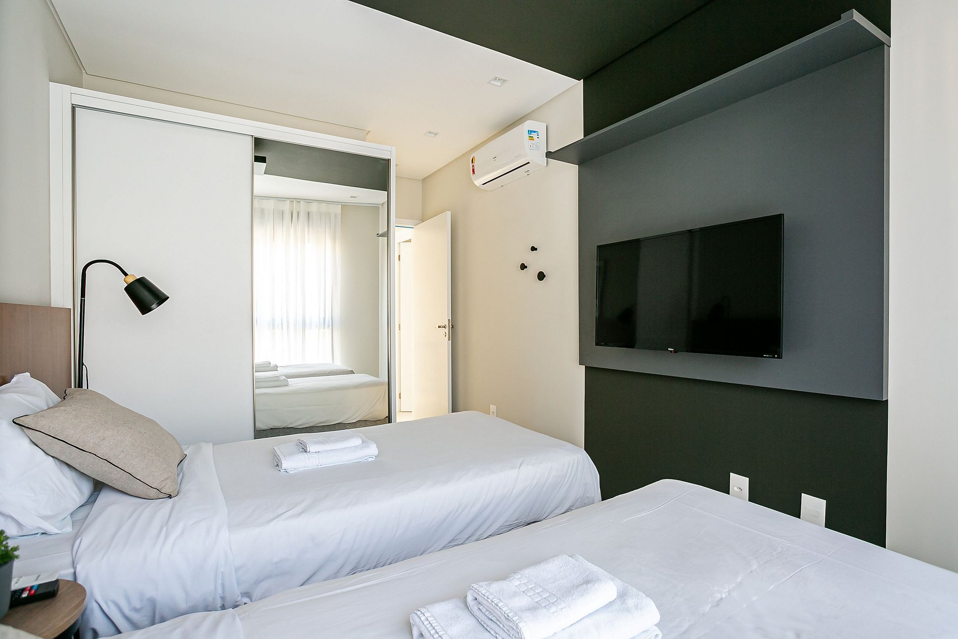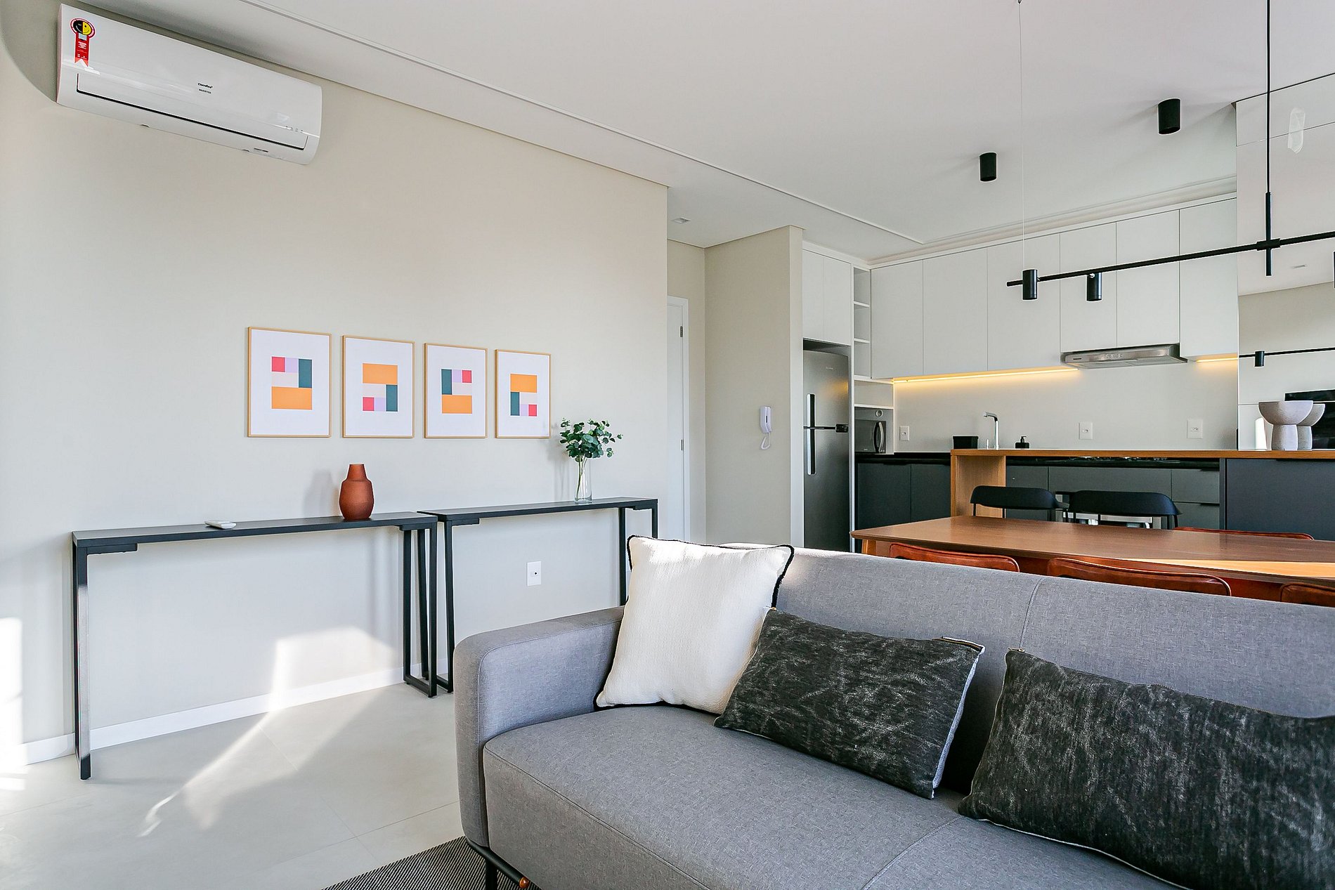 O apartamento possuí área útil de 73 m2, e são 2 dormitórios equipados com ar-condicionado SPLIT.