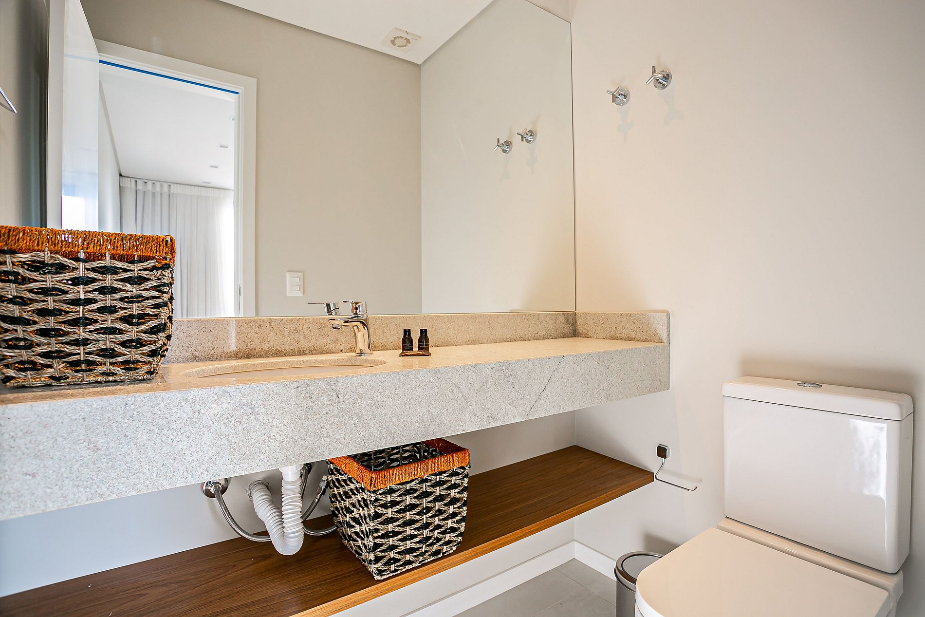 - Todos os quartos e banheiros possuem roupa de cama completa, toalhas de banho, rosto e piso todos com padrão de hotel.