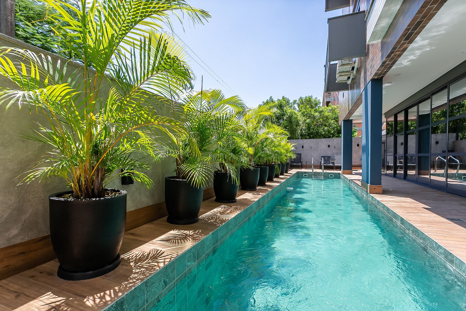 O duplex está localizado em um dos bairros mais famosos e badalados do Brasil, Jurerê Internacional.