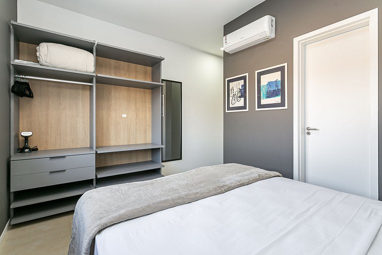 O imóvel de 74m² conta com uma suíte com cama QUEEN, um quarto com cama QUEEN, sala com Smart TV de 50 polegadas e varanda com churrasqueira. Todos os cômodos possuem AC SPLIT (QUENTE E FRIO).